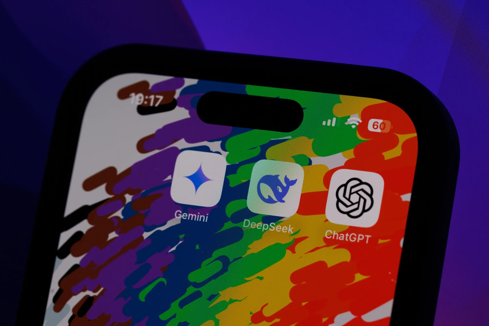 深寻、ChatGPT 和 Google Gemini 的 AI 移动应用图标。