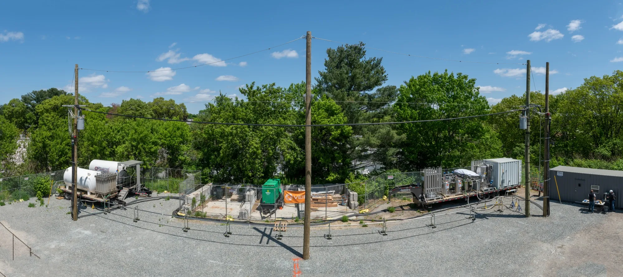 Veir, Inc. 的超导电缆在小规模上展示了使用情况。杆子上的两个小垃圾桶大小的圆柱体是该公司的技术,用于重新冷却含有液氮的管道,液氮从白色罐中补充。图片来源:Veir“数据中心的建设和扩展速度,以及能够服务于更高密度和更高功率负载的紧迫性,现在非常高,”Heidel 说。“因此,似乎有相当大的兴趣。”