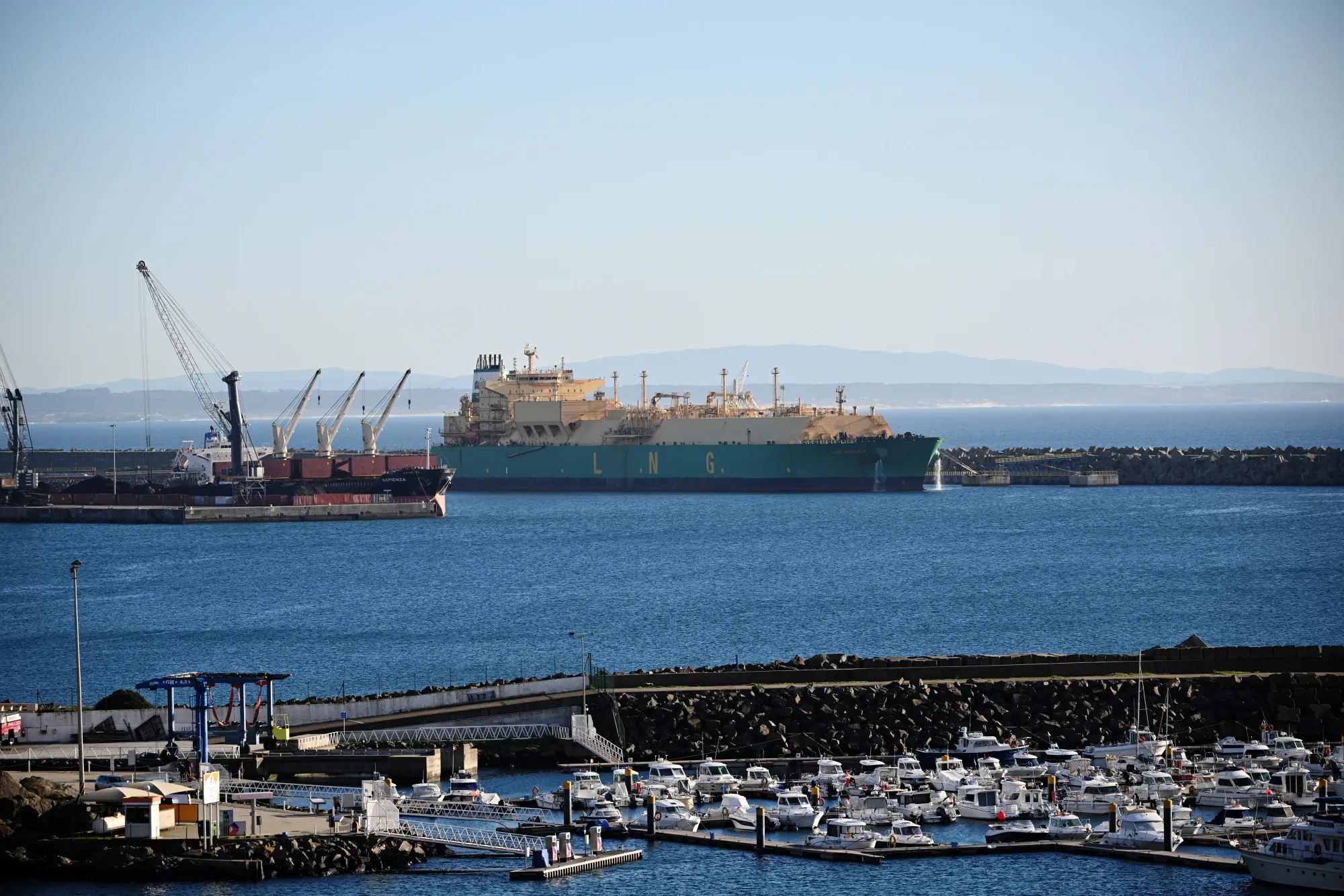 一艘液化天然气运输船在葡萄牙西尼斯港。