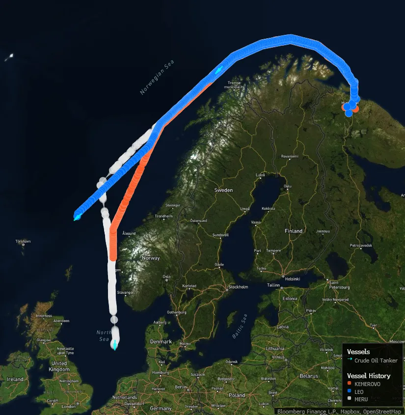 三艘被列入黑名单的油轮正在将受制裁的俄罗斯原油从摩尔曼斯克运往印度。印度已表示,只允许在1月10日之前装载的受制裁油轮进入其港口——前提是它们在2月27日之前到达。所有五批货物都是在1月10日之后收集的。