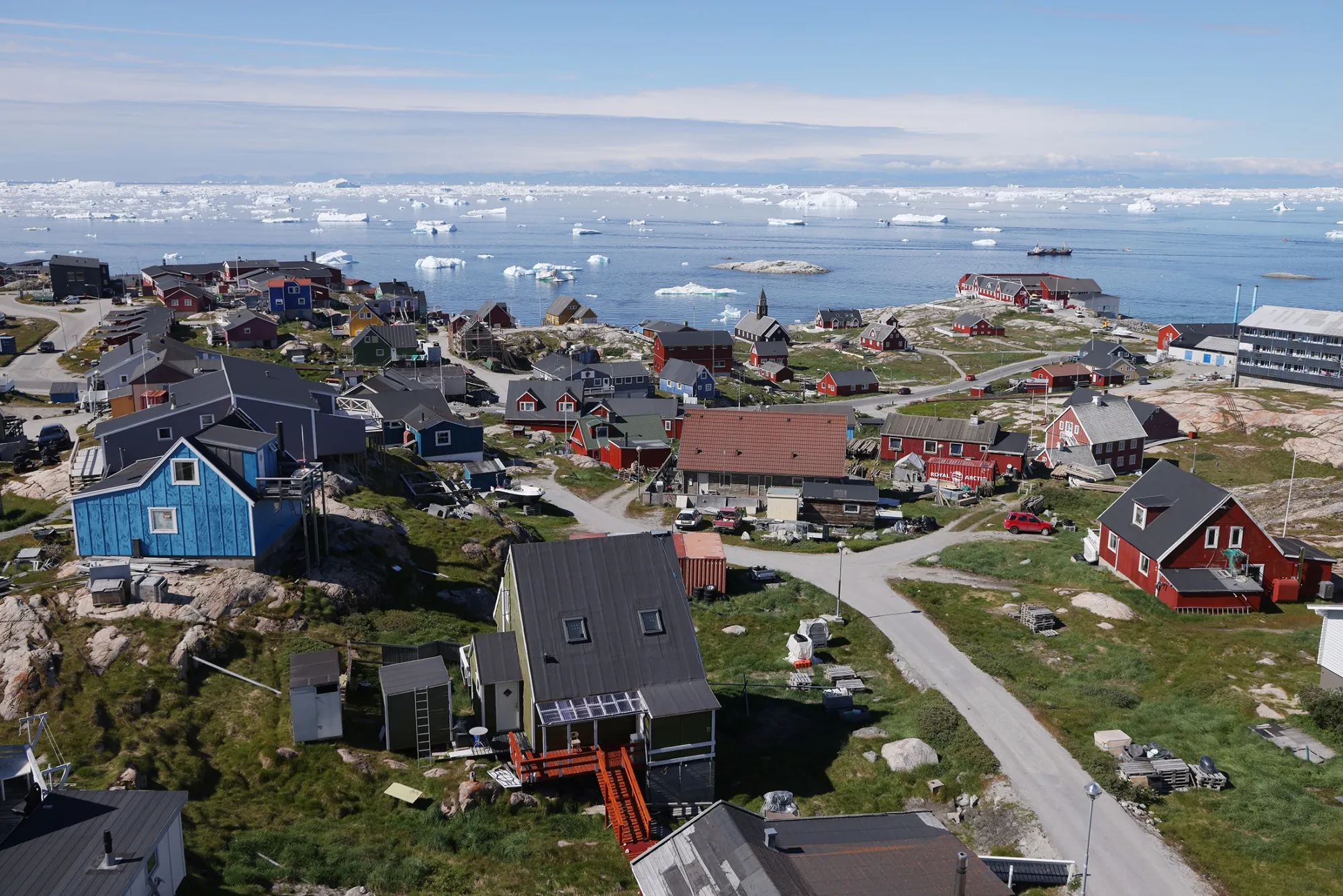 迪斯科湾,伊卢利萨特,格林兰。摄影师:肖恩·加卢普/盖蒂图片社尽管特朗普坚持 格林兰人想要加入美国,一项民调显示85% 的人口反对离开丹麦去美国。