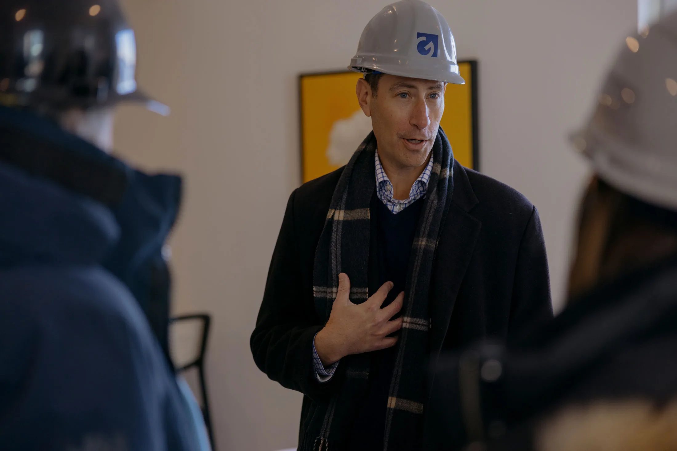 布莱恩·斯坦维尔策在25号水街的参观中。摄影师:何塞·阿尔瓦拉多 Jr/Bloomberg斯坦维尔策表示,这种规模的塔楼——拥有1,320个单元,布局从单间到三卧室不等,租户停车场,屋顶和联合办公空间——从头开始重建在经济上是不可行的,特别是考虑到所需的时间和许可。根据负责该项目的建筑师约翰·切特拉的说法,这种新建造的成本约为每平方英尺1,000美元。这将使25号水街大小的建筑成本达到约10亿美元。