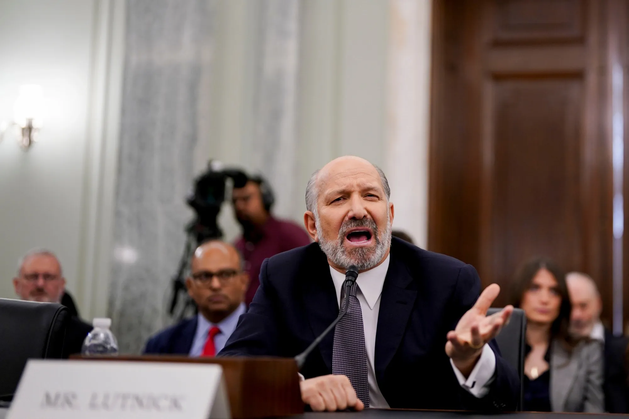 霍华德·卢特尼,坎托·菲茨杰拉德公司的首席执行官和美国商务部长提名人,在华盛顿的参议院商业、科学和运输委员会确认听证会上发言。摄影师:阿尔·德拉戈/彭博社卢特尼在去年11月争取财政部长职位时对关税采取了鹰派立场。他的候选资格促使贝森特——市场认为他是一个更温和的人物——公开全力支持特朗普的关税观点,华盛顿的研究机构资本阿尔法合伙公司的董事总经理詹姆斯·卢西尔表示。