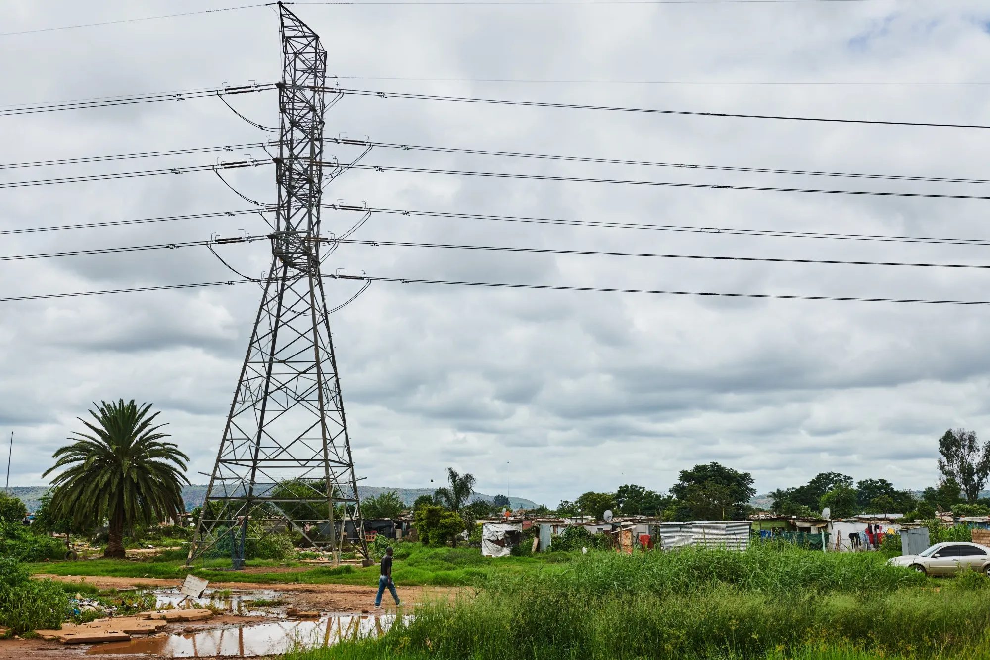 南非比勒陀利亚外的马梅洛迪镇上的一座电力塔。
