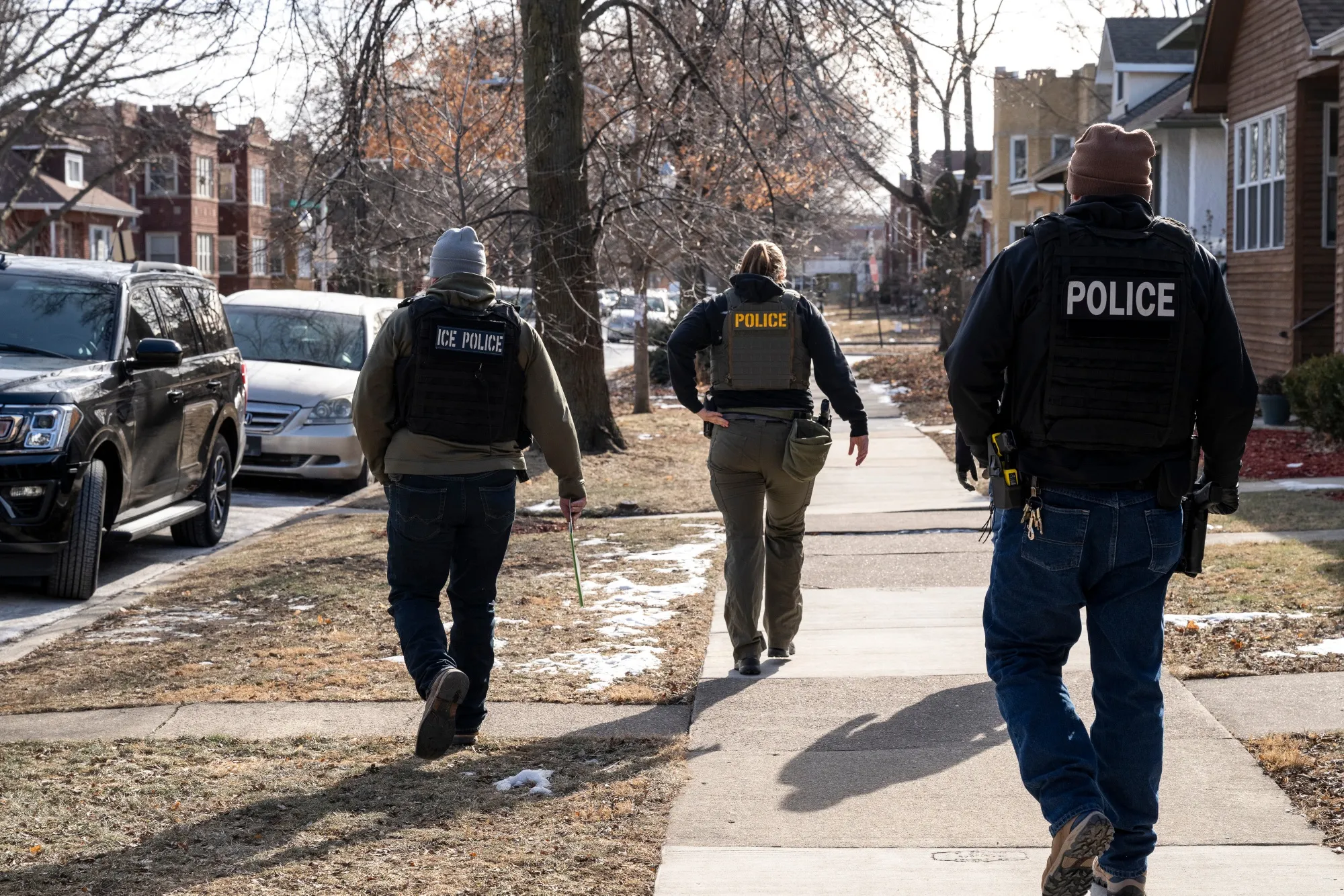 ICE特工在1月26日于芝加哥进行的针对性执法行动中。地方和州执法人员可能很快会根据特朗普的指令参与这些行动。