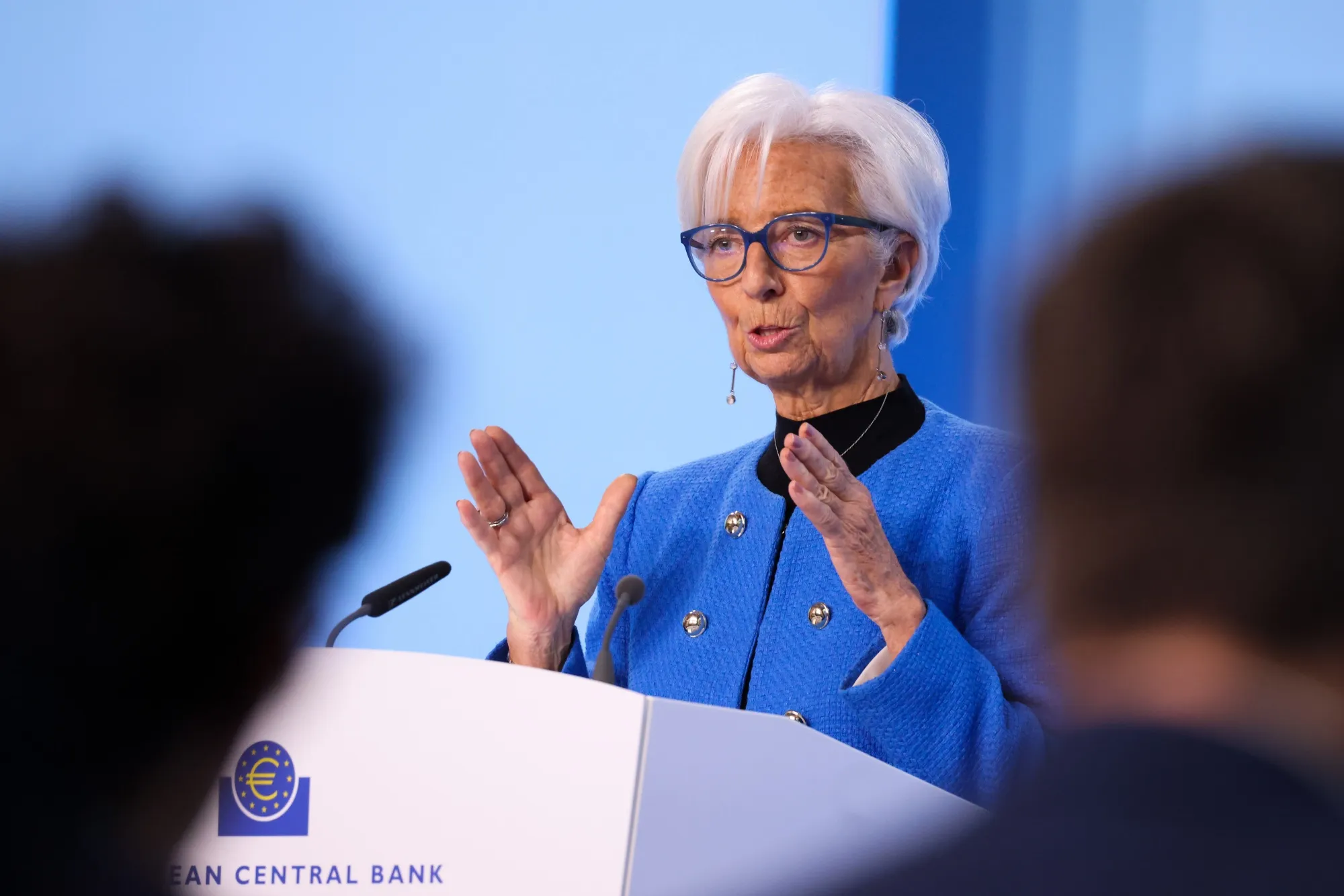 欧洲中央银行(ECB)行长克里斯蒂娜·拉加德在德国法兰克福举行的利率决定新闻发布会上,时间为1月30日。