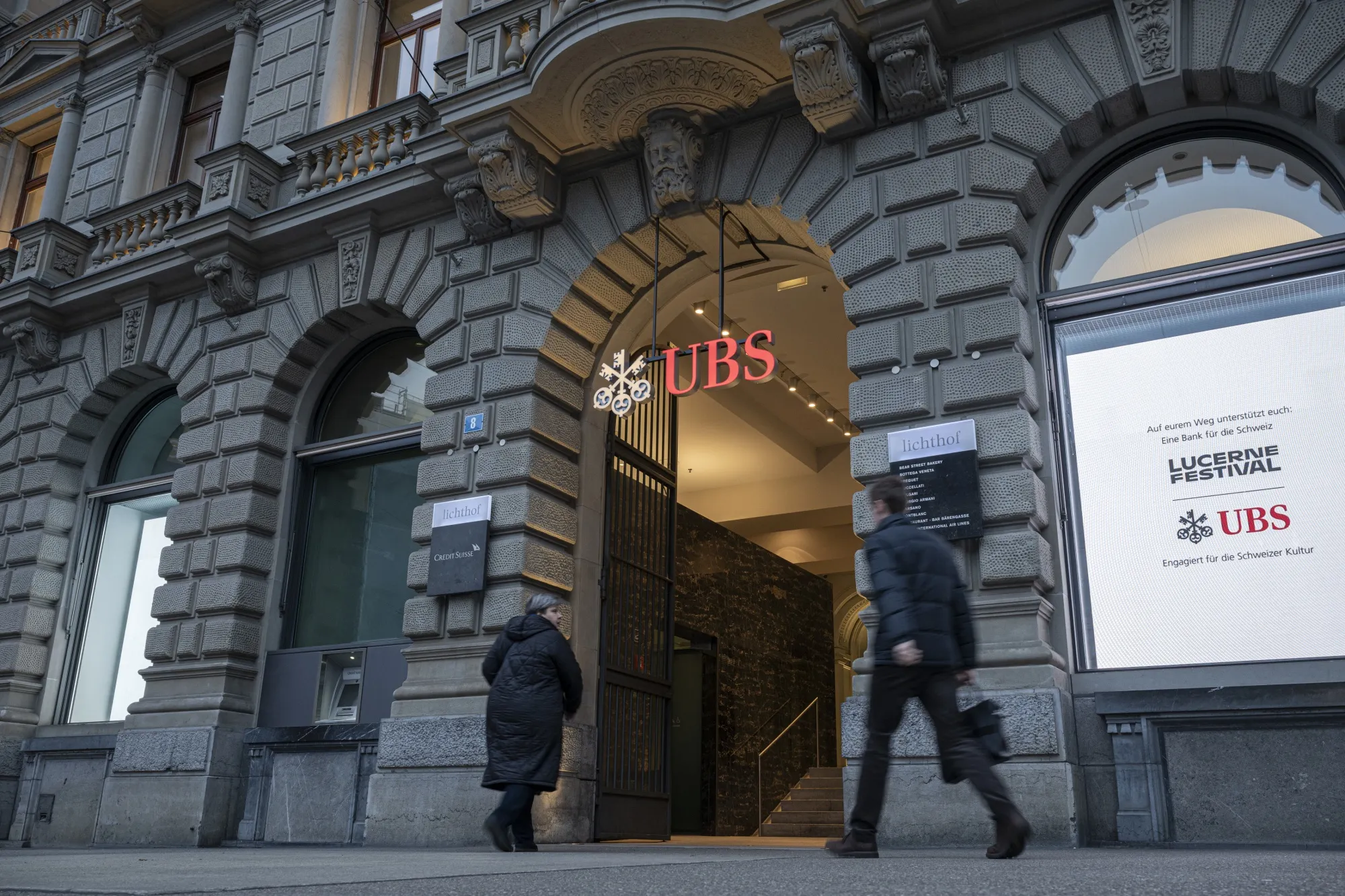 2月4日,苏黎世原瑞士信贷总部大楼上的瑞银集团标识。