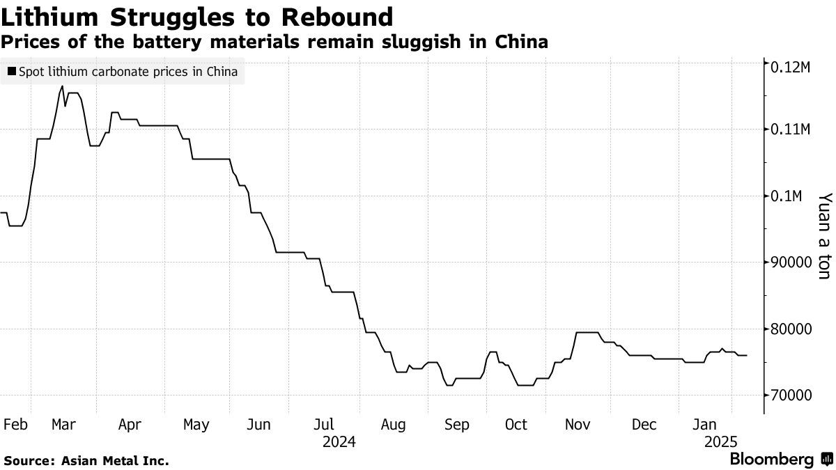 亚洲锂生产商股价下跌,因宁德时代与江苏龙蟠科技旗下中国精炼厂重启可能压制这种电池金属潜在的价格复苏。