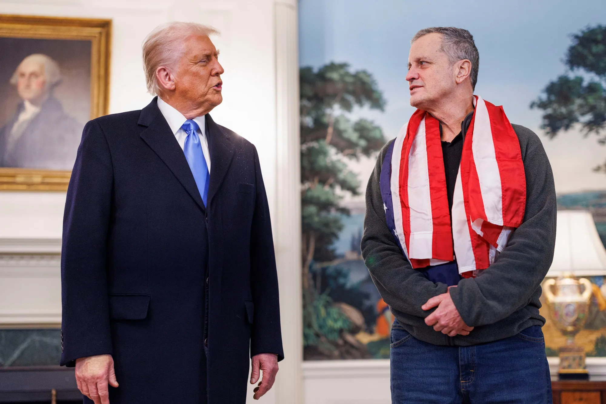 2月11日,唐纳德·特朗普与马克·福格尔在华盛顿特区白宫会面。摄影师:Aaron Schwartz/CNP/Bloomberg福格尔2021年在莫斯科被捕,因携带医用大麻入境被控毒品走私罪,获刑14年。其获释之际,特朗普正加紧斡旋旨在结束俄乌近三年战争的和平协议。