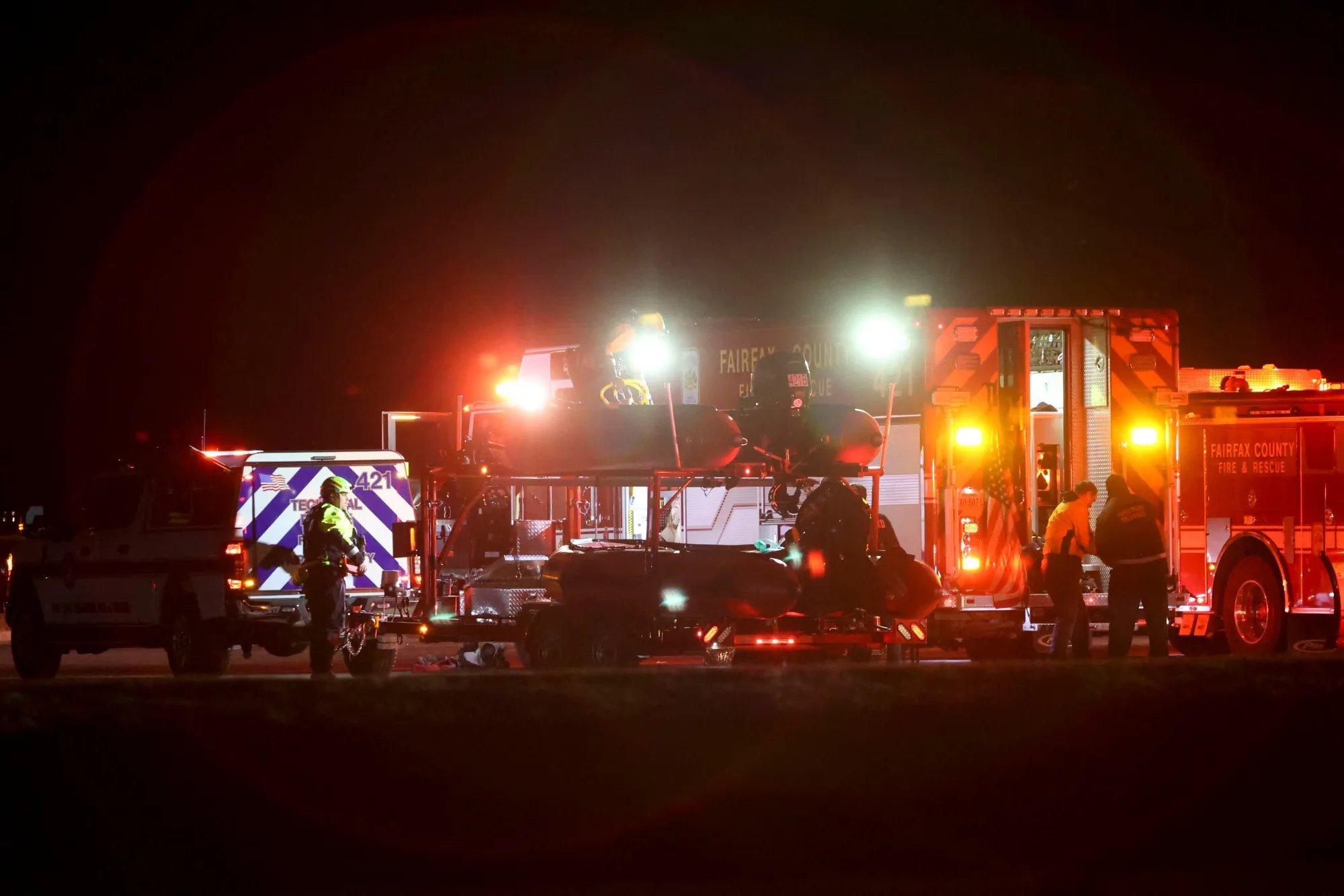 1月29日波托马克河附近坠机现场的紧急救援人员。