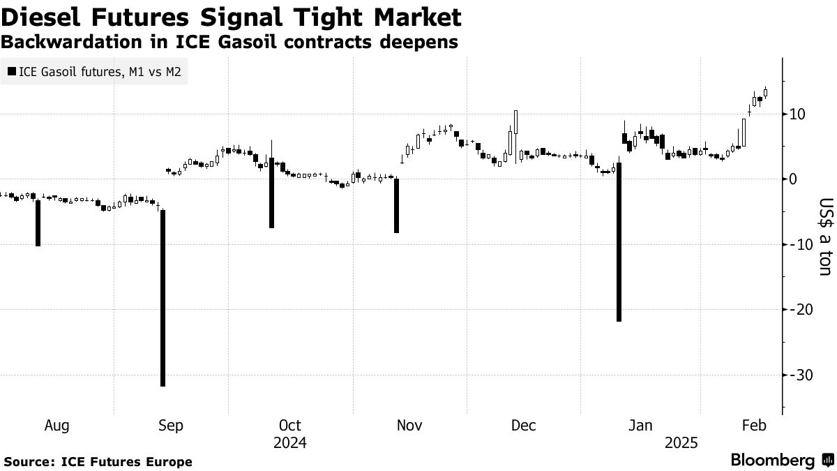 基准柴油期货显示出欧洲市场供应紧张的迹象,燃料交易商持续面临供应压力。