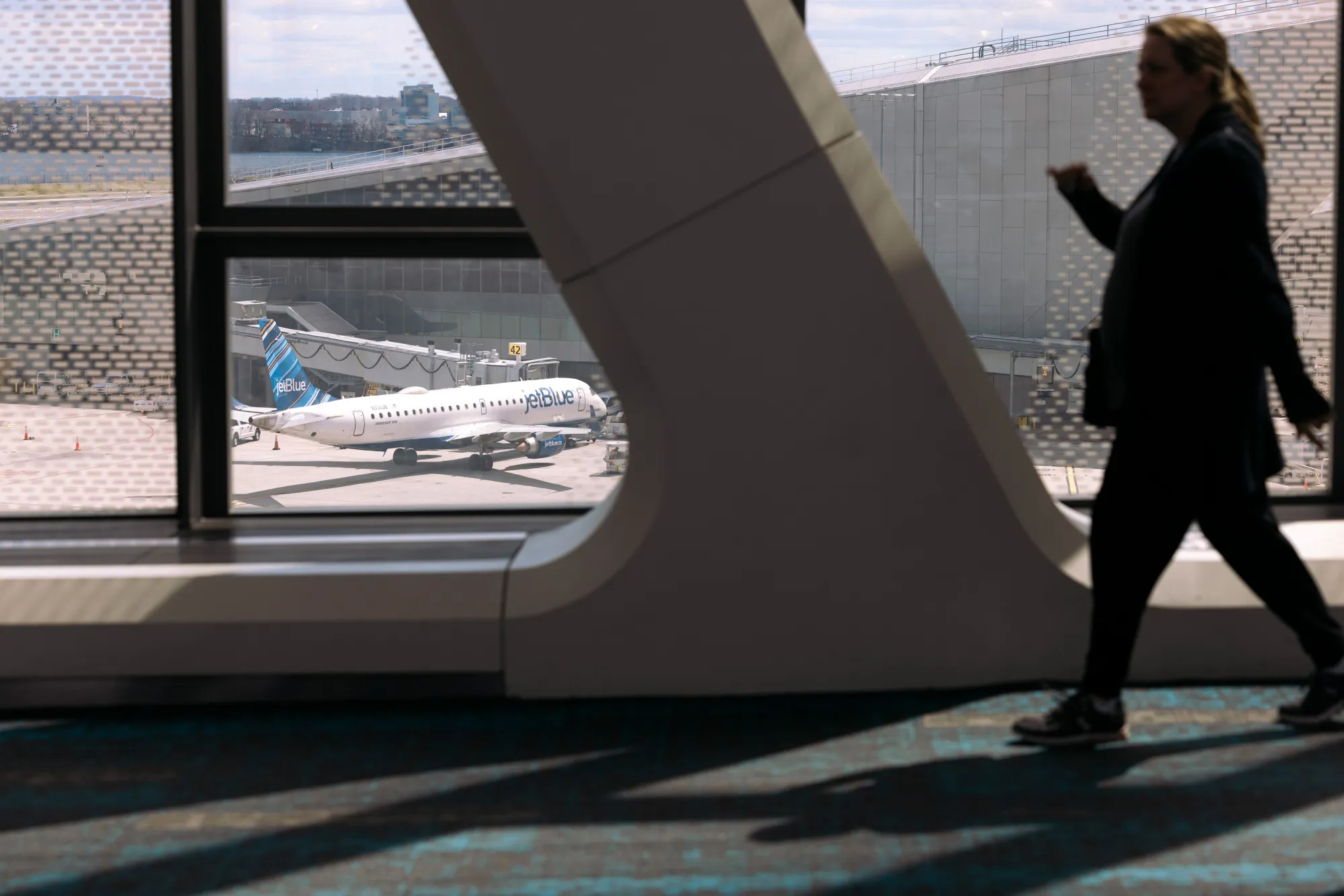 摄影师:安格斯·莫丹特/彭博社捷蓝航空公司在联邦法院接连否决其与其他航司的两项合作后,公司总裁表示若条件合适仍准备建立新联盟。