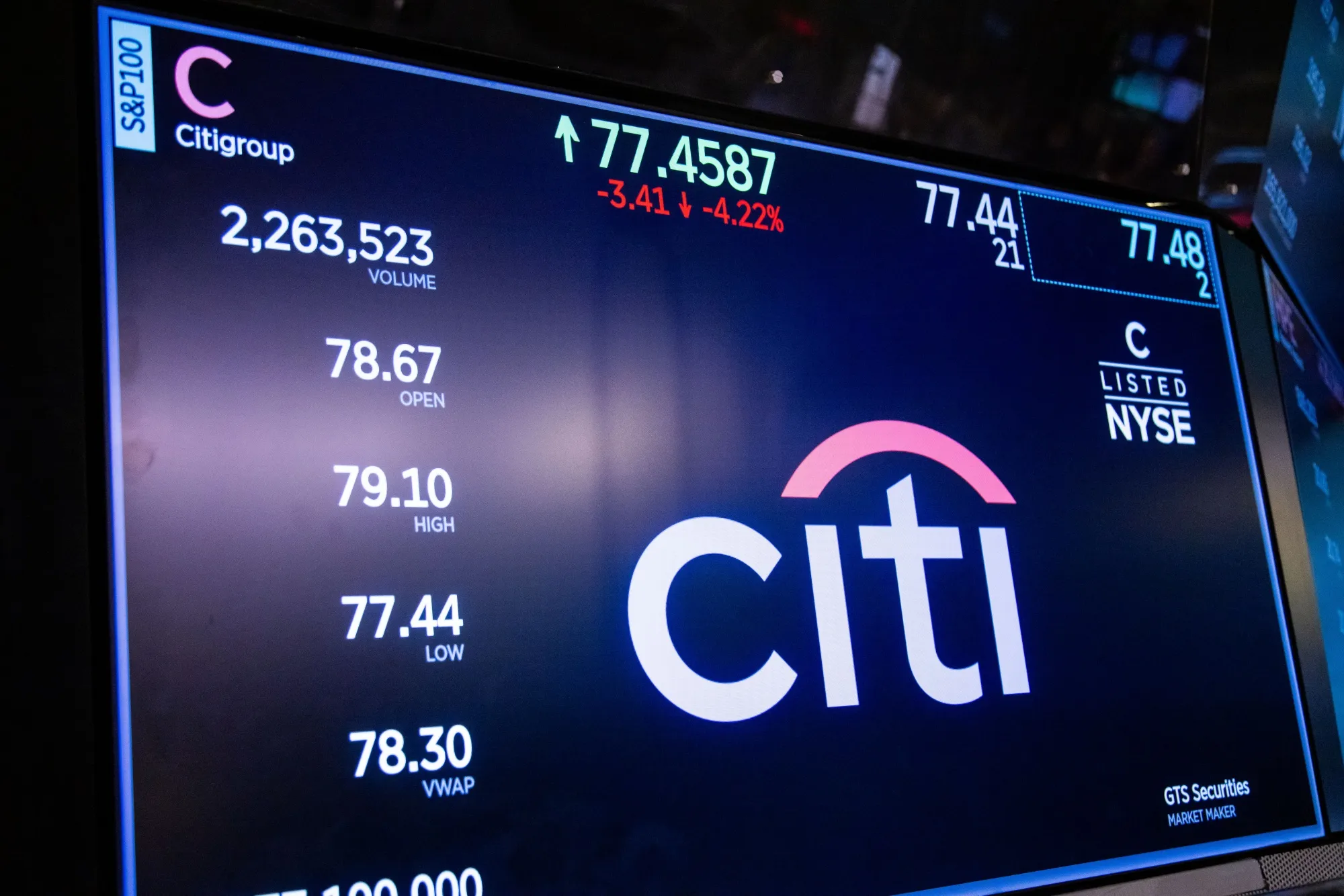 2025年2月3日周一,美国纽约证券交易所(NYSE)内花旗集团公司的标识。
