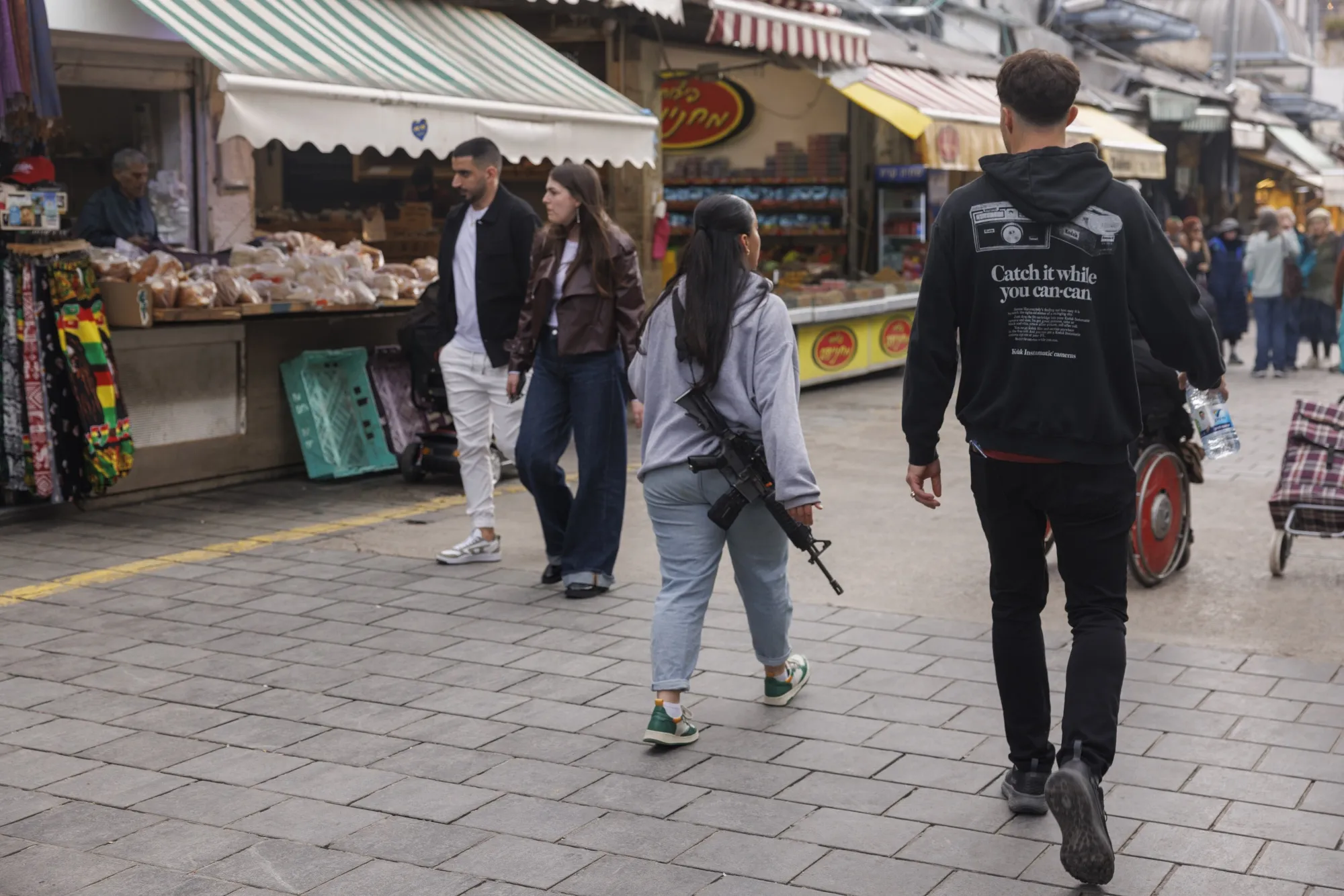 一名持突击步枪的购物者出现在耶路撒冷某市场。