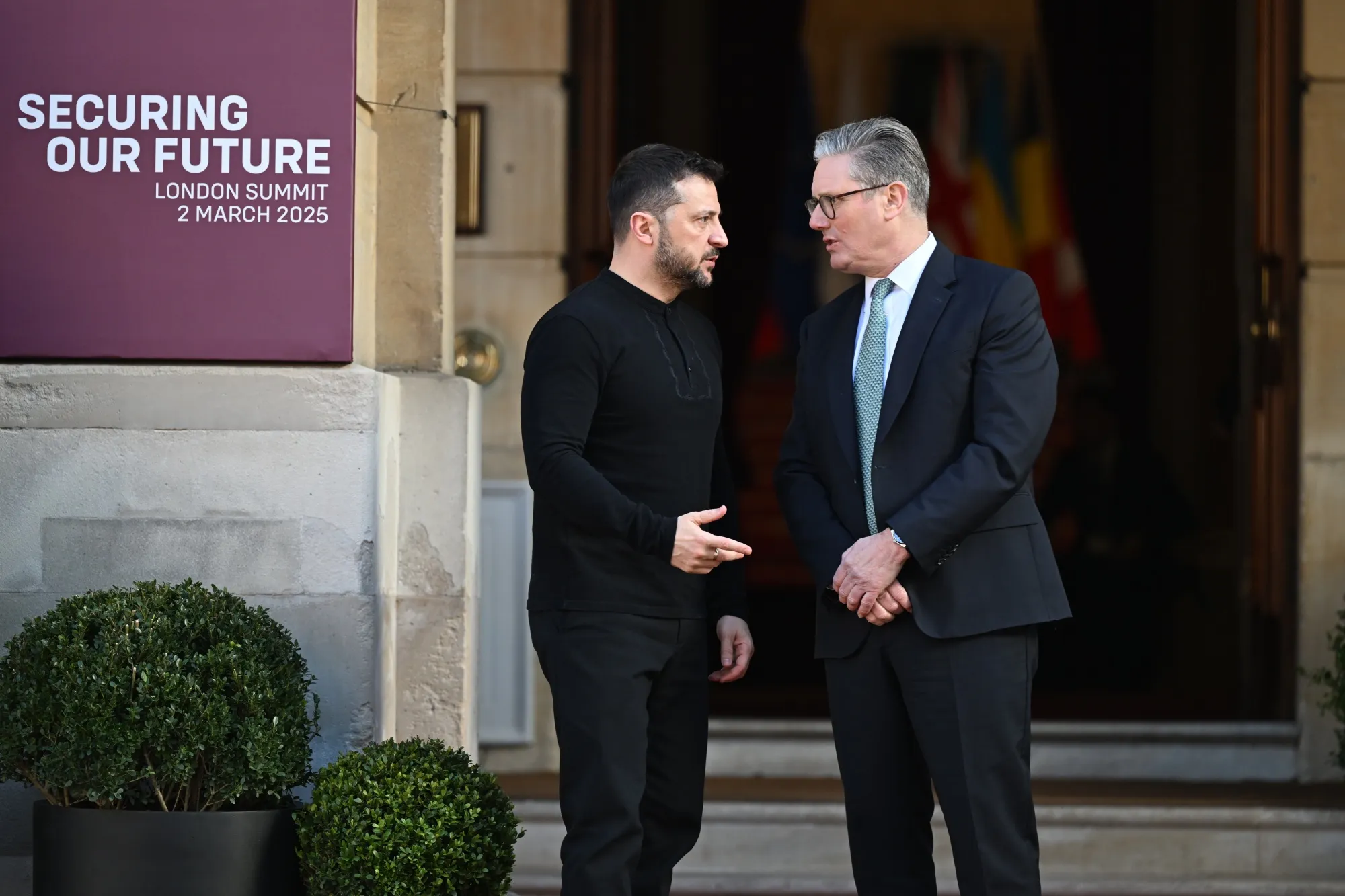 3月2日,基尔·斯塔默在伦敦兰开斯特宫峰会前迎接弗拉基米尔·泽连斯基。