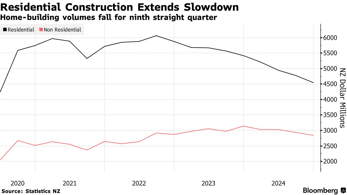 新西兰住宅建设连续第九个季度下滑——彭博社