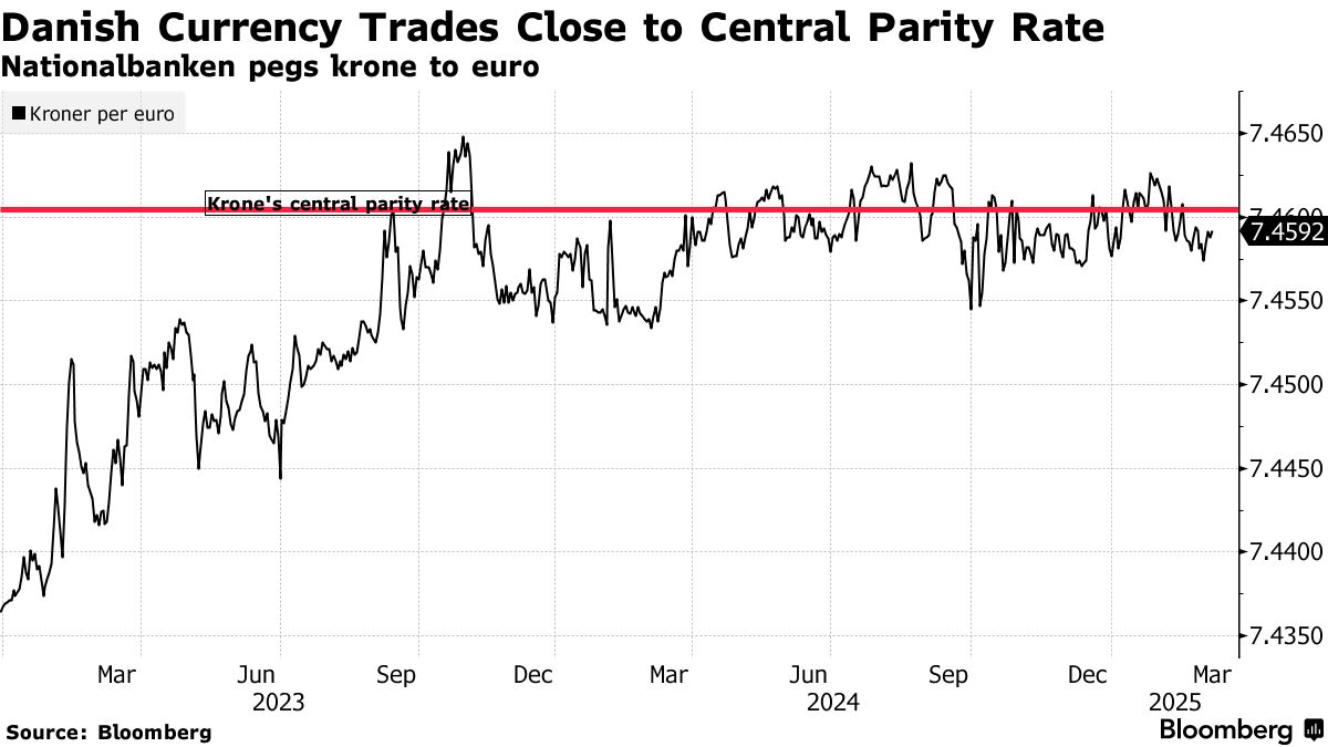 丹麦央行将基准利率下调25个基点,与欧洲央行同步行动以维护克朗与欧元的挂钩汇率。