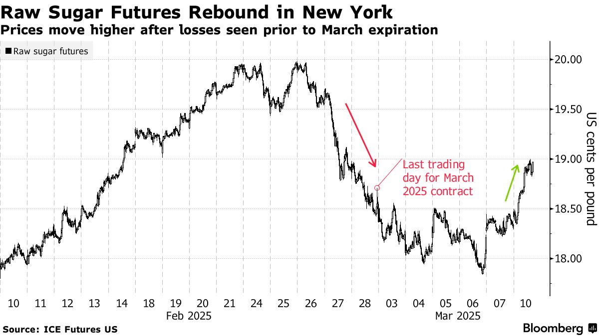 摄影师:保罗·宁森/彭博社纽约原糖期货在创纪录交割量结算三月合约前的抛售后出现反弹上涨。交割以结算三月合约。