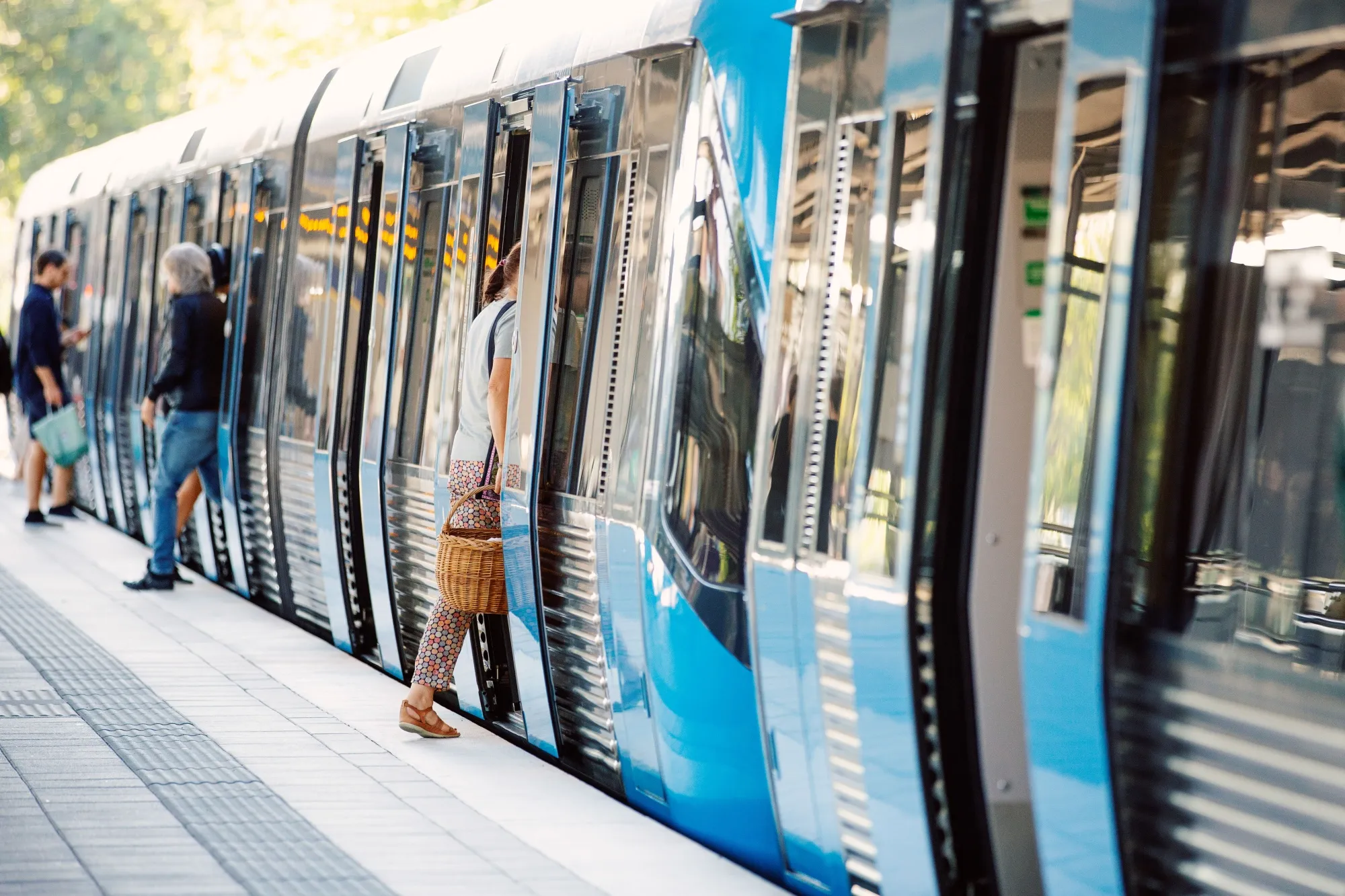 通勤者在斯德哥尔摩阿尔维克地铁站上下有轨电车。