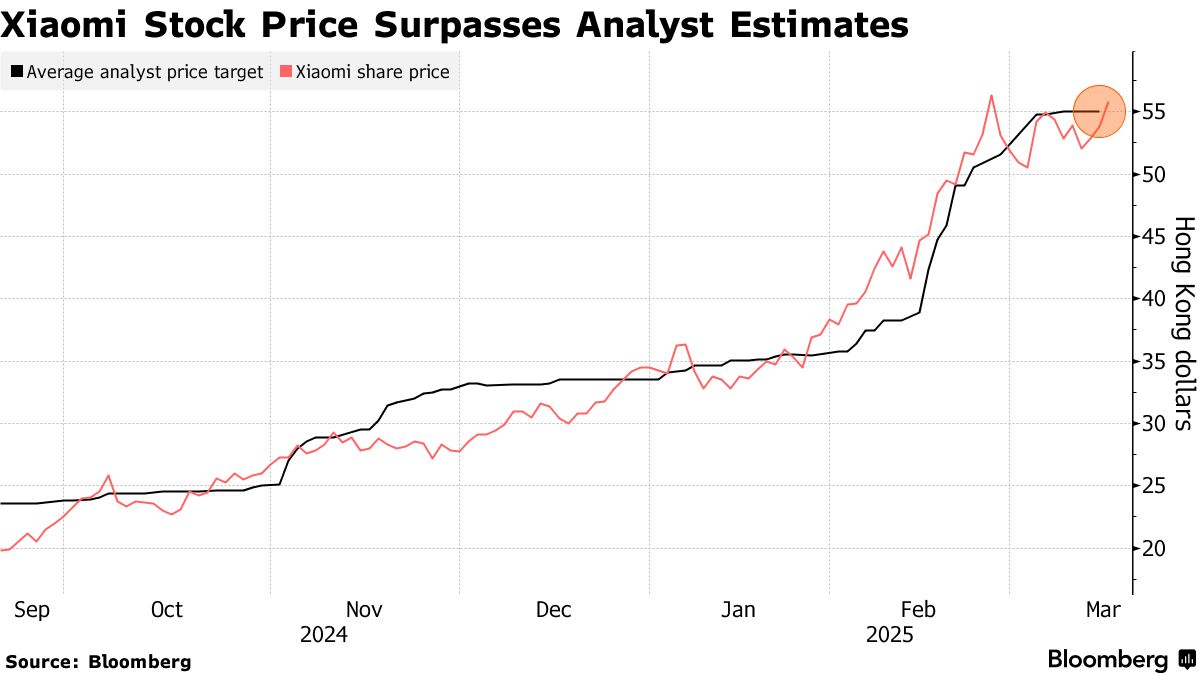 小米财报发布前股价飙升 表现远超分析师预期——彭博社