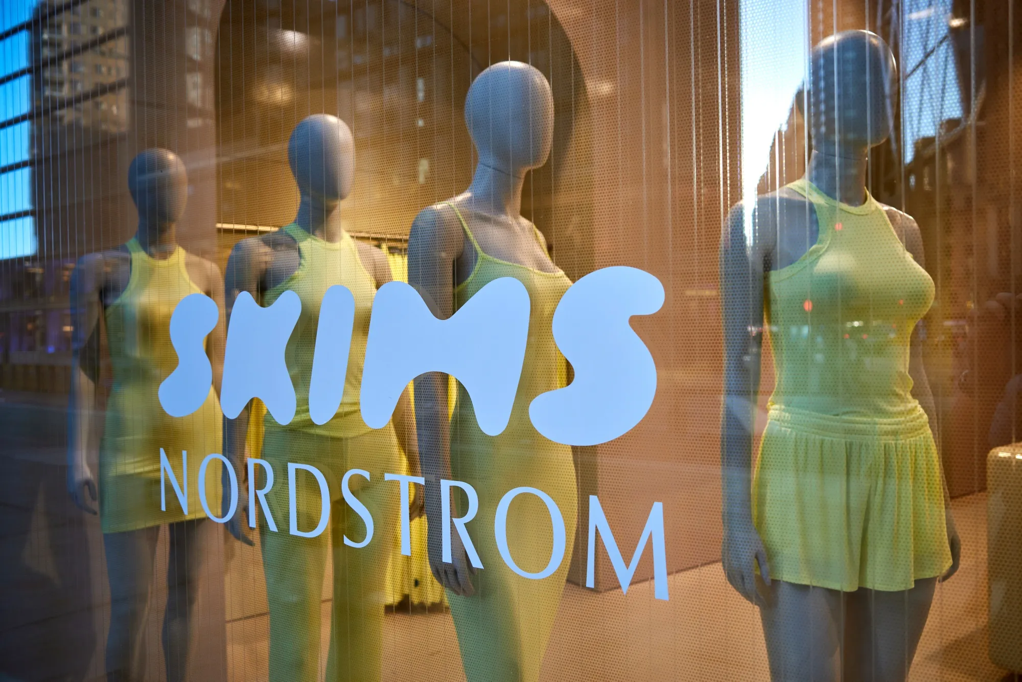 2024年6月纽约Nordstrom旗舰店内的Skims快闪店。摄影师:Bing Guan/Bloomberg卡戴珊将把其美妆品牌纳入Skims旗下。该公司近期宣布与耐克公司达成合作,并在2023年一轮融资中获得40亿美元估值。