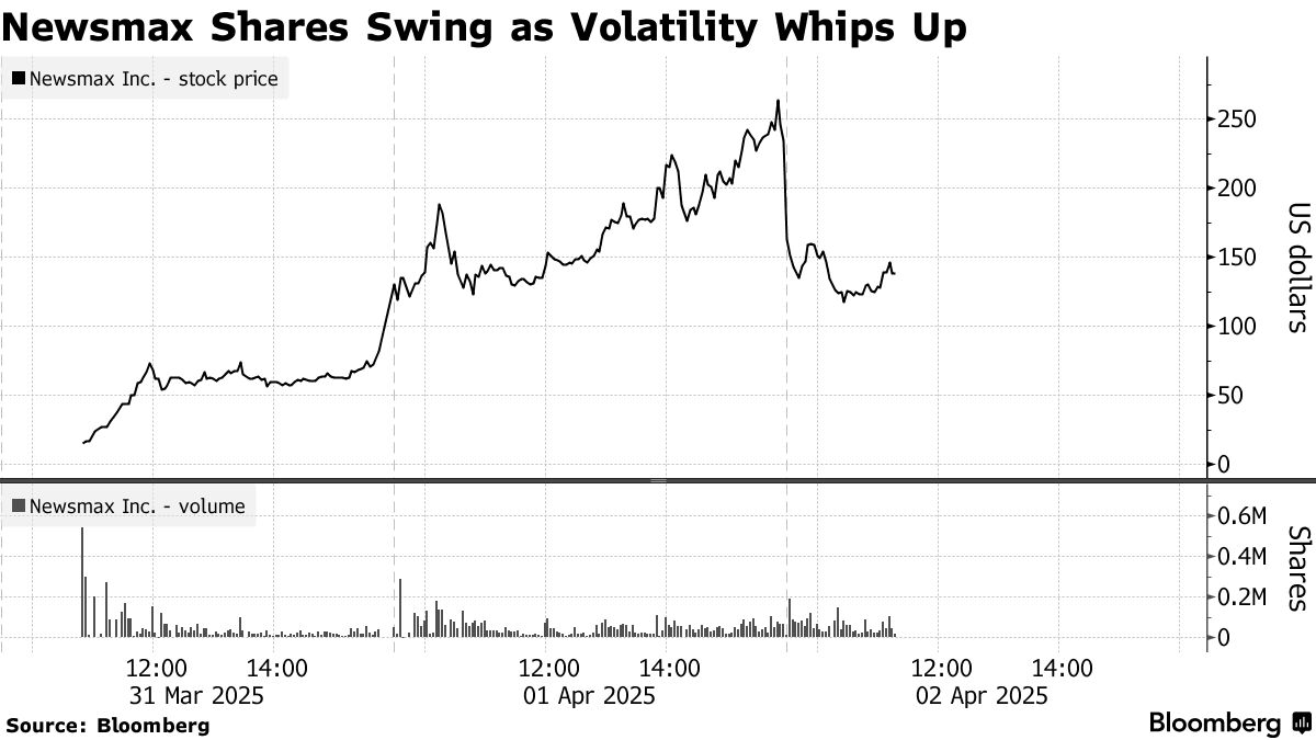 Newsmax(NMAX)股价在暴涨2230%后失去动力 市值减半——彭博社