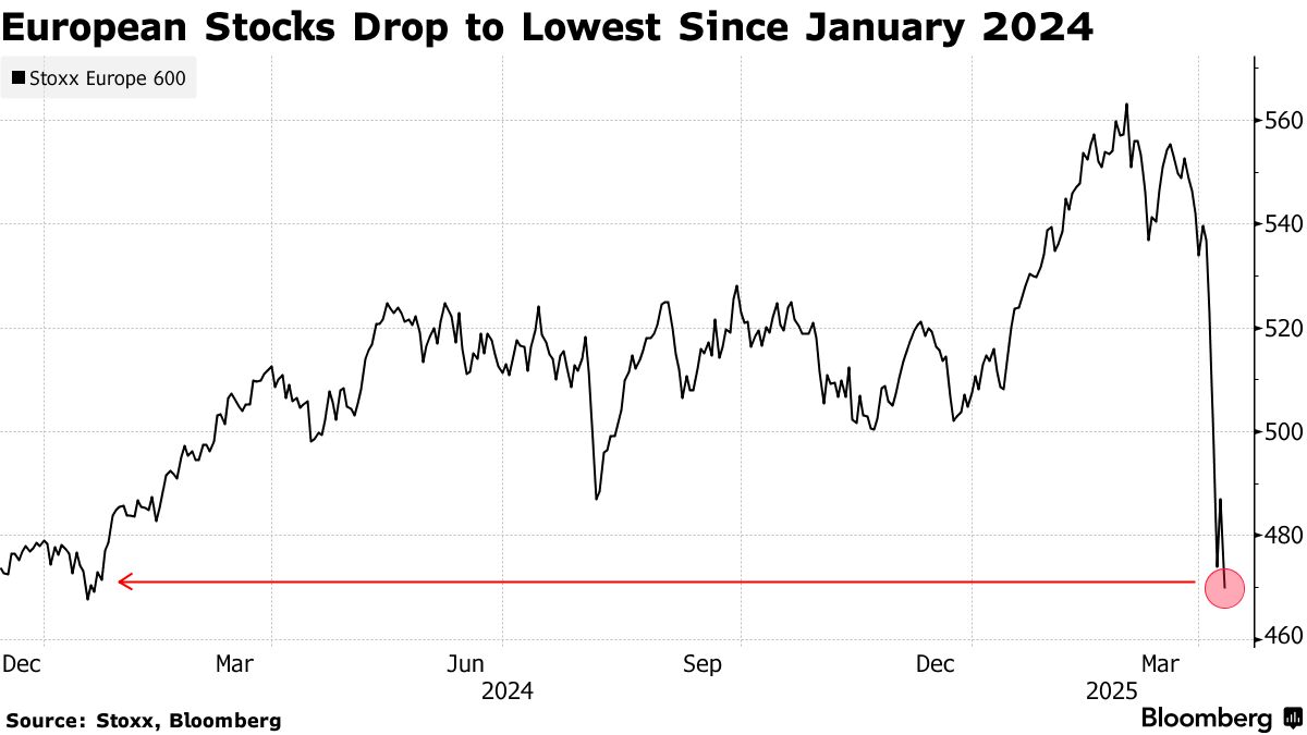 截至伦敦时间周四凌晨5:03,欧洲斯托克50指数期货上涨8.1%。德国DAX指数期货飙升7.8%。由于贸易争端引发对经济前景的担忧,基准斯托克欧洲600指数在过去五个交易日下跌12%,至2024年1月以来的最低水平。