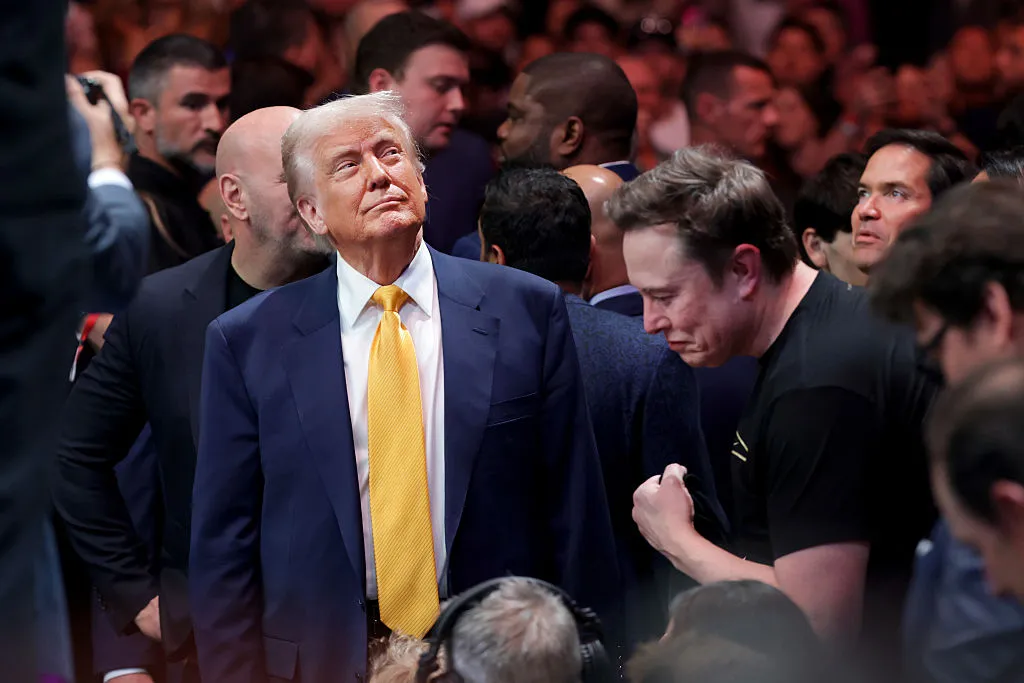 4月12日,唐纳德·特朗普与埃隆·马斯克在凯西亚中心观看终极格斗锦标赛。