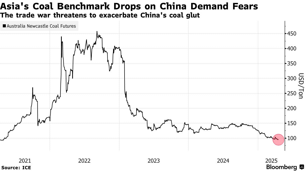 亚洲煤炭价格因贸易战担忧跌至四年新低——彭博社
