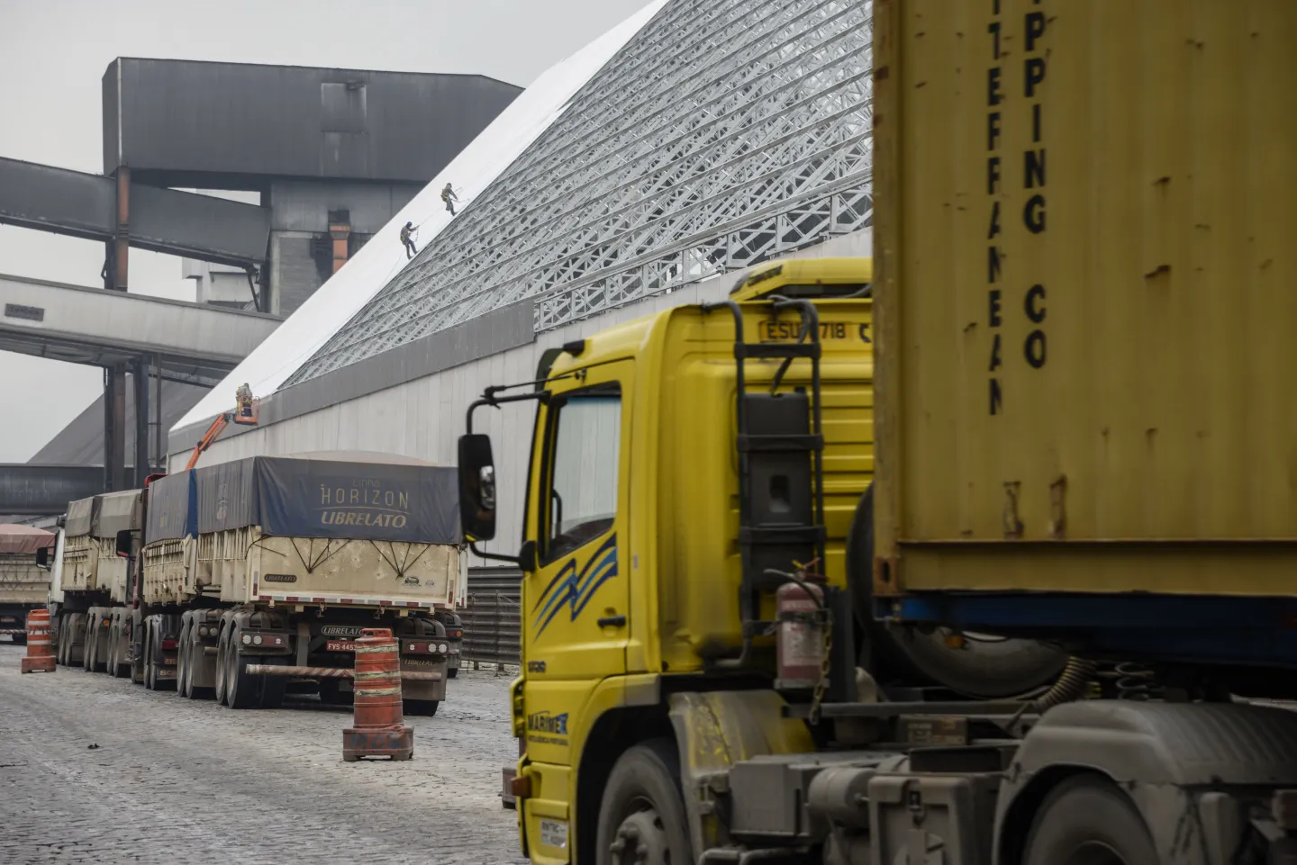 2015年11月,卡车在桑托斯港Rumo码头卸载食糖的场景