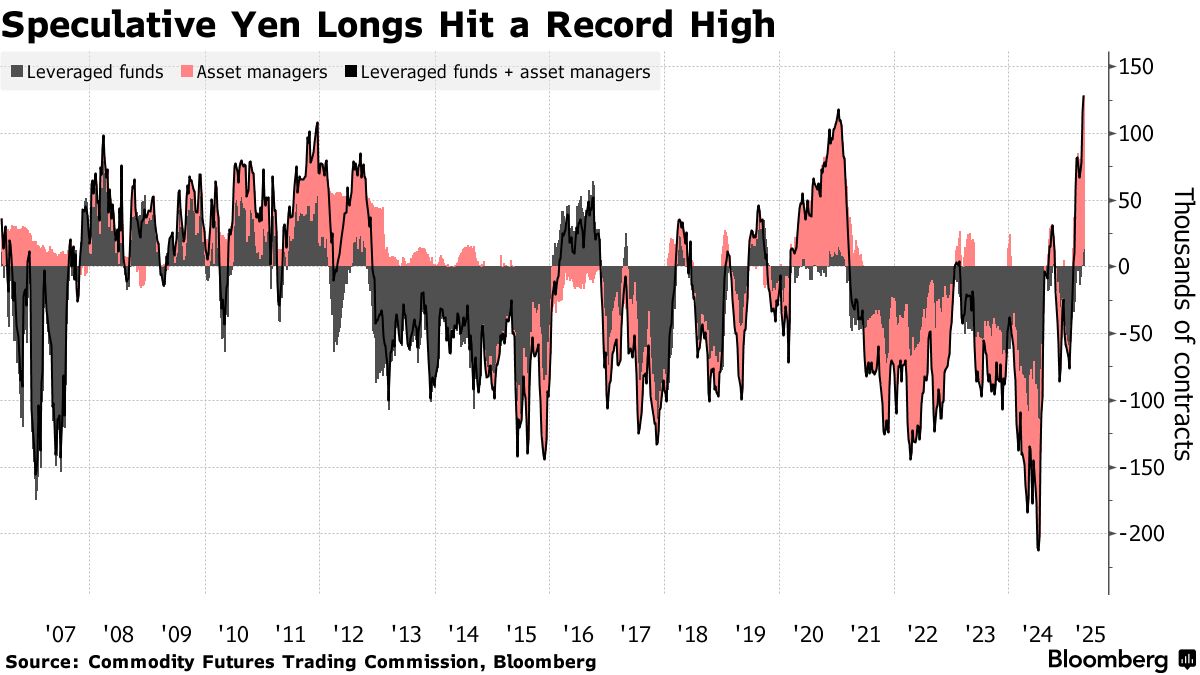 投机交易者因关税将日元看涨押注推至创纪录水平 - 彭博社