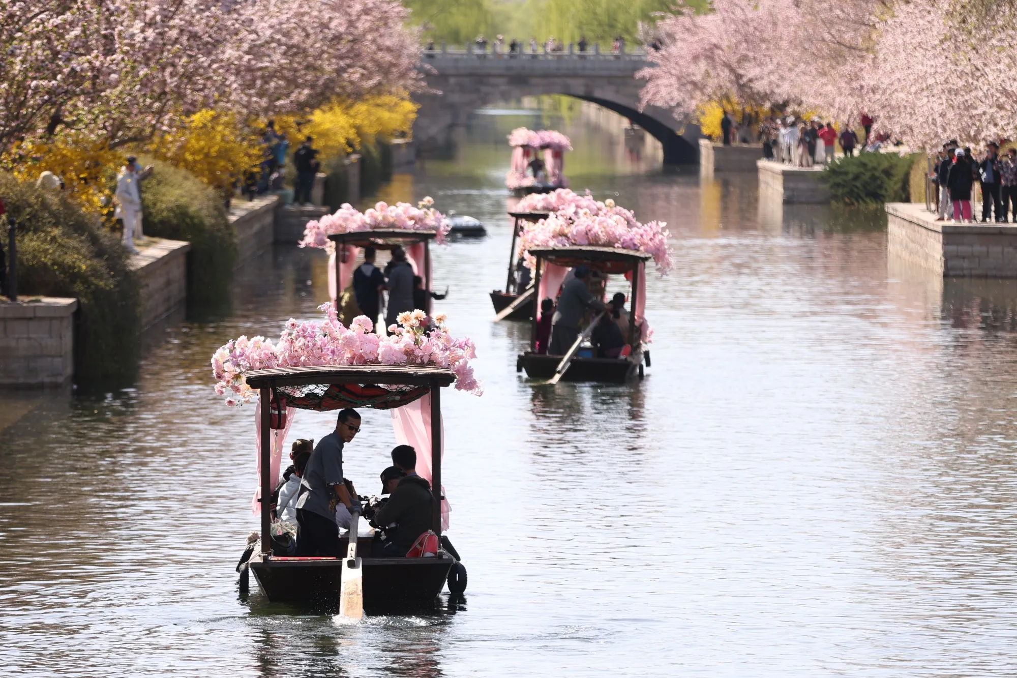 游客在北京元大都城垣遗址公园乘船游览。摄影师:蒋启明/中国新闻社/视觉中国/盖蒂图片社