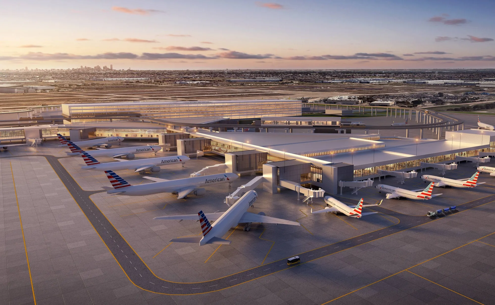 达拉斯沃斯堡国际机场F航站楼外观效果图。图片来源:DFW机场达拉斯沃斯堡国际机场与美国航空集团就一项40亿美元的扩建项目达成协议。