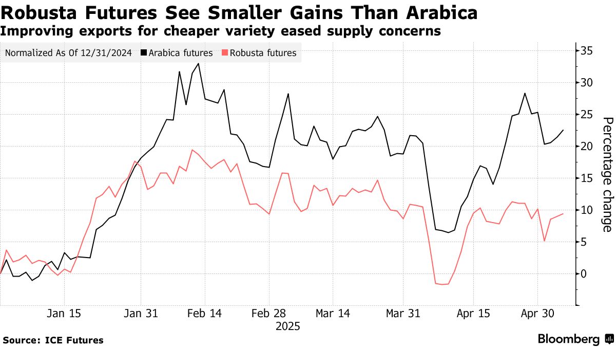 尤其是速溶咖啡主要原料罗布斯塔豆的供应前景正在改善。全球最大供应国越南4月出口量增长11%,而另一重要罗布斯塔产地乌干达本季出货量也实现攀升,有助于补充交易所监控库存。