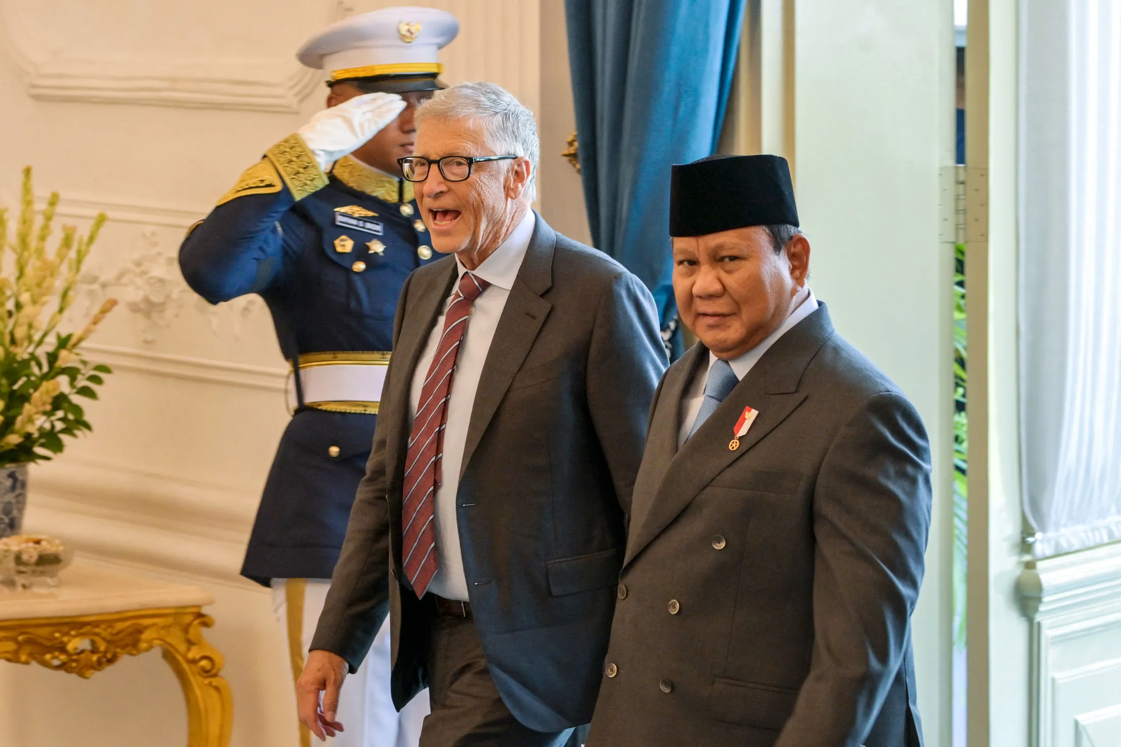 5月7日,比尔·盖茨(左)与印度尼西亚总统普拉博沃·苏比安托在雅加达会晤。