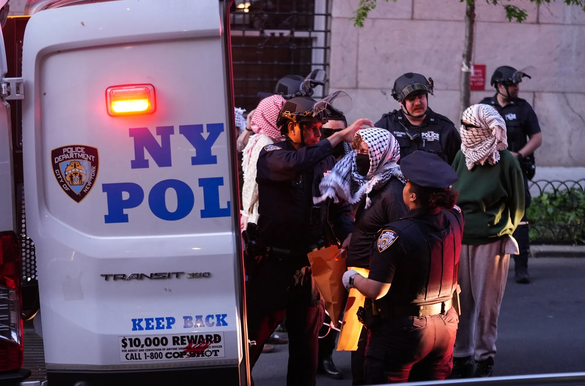 5月7日,纽约市警方在哥伦比亚大学逮捕亲巴勒斯坦抗议者。