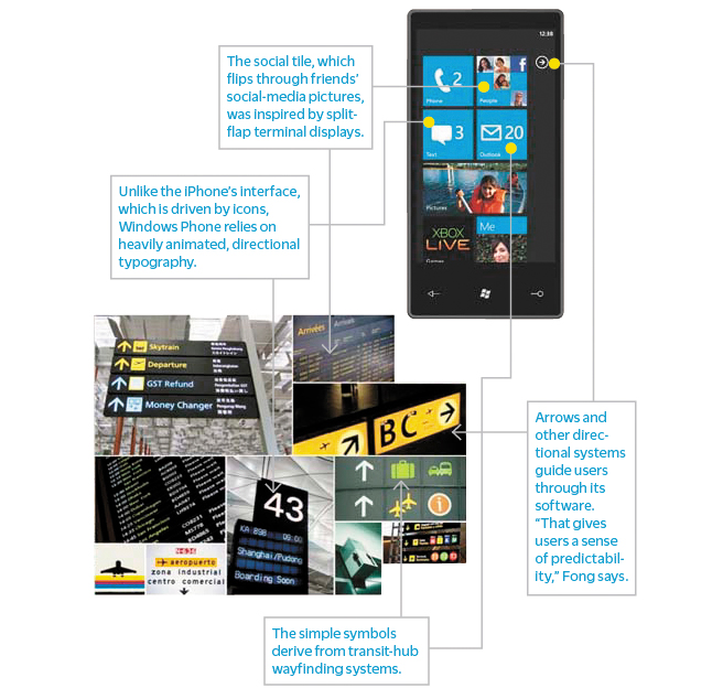 出乎意料的是,当时以Clippy和混乱的IE工具栏闻名的微软,却率先引领了实用主义扁平化风潮——先是推出以排版为核心的Zune,接着打造了针对笔记本和手机的惊艳(尽管短暂)的磁贴版Windows系统。在产品发布会上,微软设计师开始推崇包豪斯"形式追随功能"的理念,他们从机场车站的导视系统汲取灵感,采用强烈对比与锐利图标。时任Windows用户体验总监的塞缪尔·莫罗公开表示,他们追求"极致的简约主义"和"剥离装饰”,摒弃了华丽虚拟计算器、信封和旋转名片夹等"过时元素”。