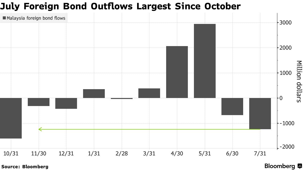 由于美元今年首次走强,全球基金上月从马来西亚主权债务中撤资12亿美元,创下去年10月以来的最大流出规模。