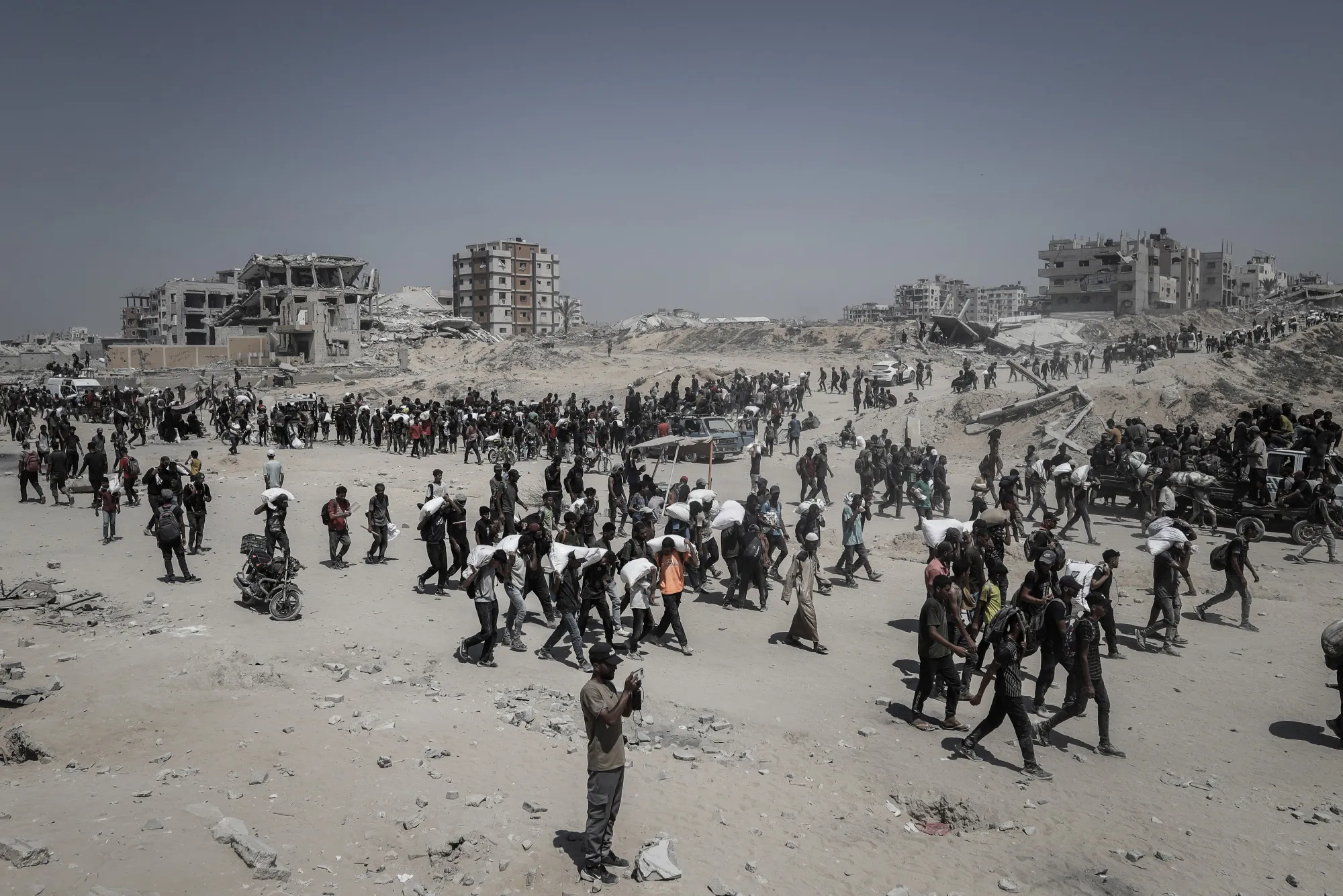 7月,巴勒斯坦人在加沙北部搬运援助物资。