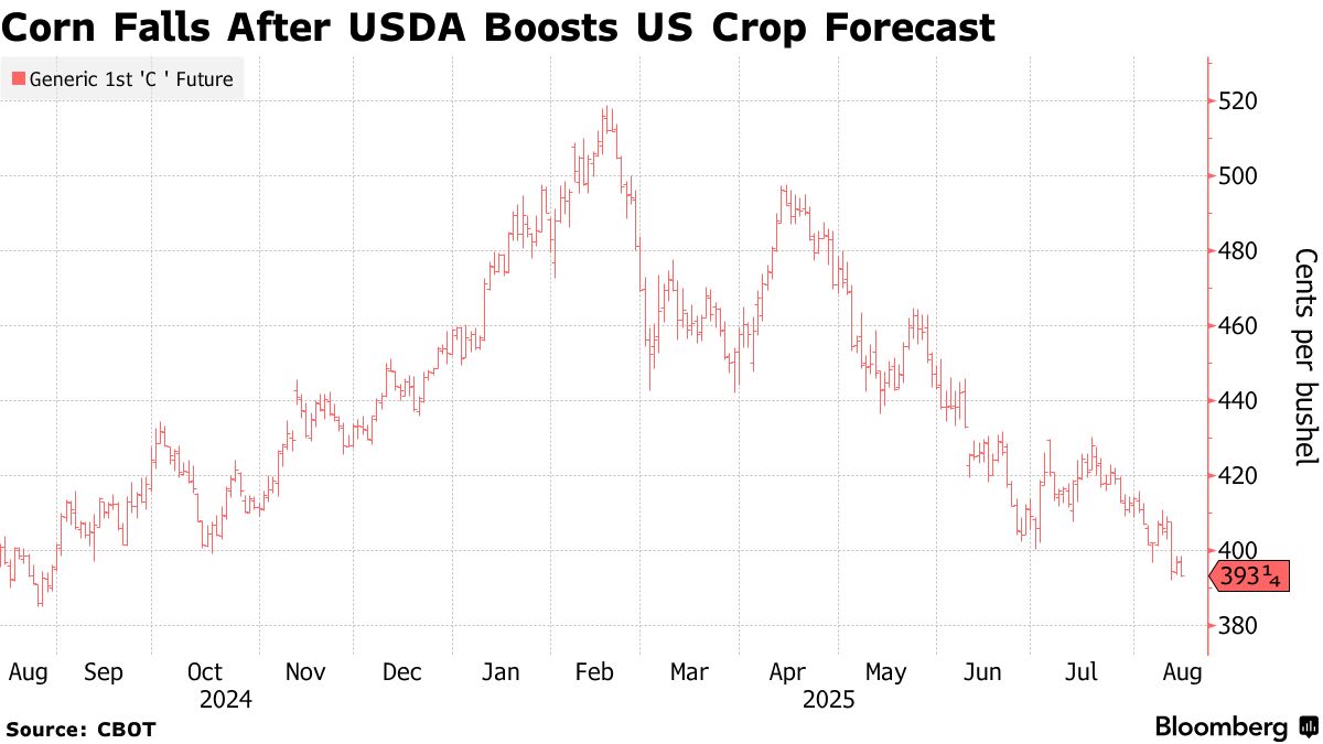 玉米价格下跌,交易员持续关注美国农业部的高产预估——彭博社