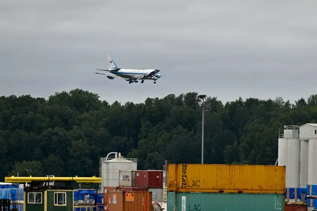 载有美国总统唐纳德·特朗普的飞机于8月15日降落在阿拉斯加埃尔门多夫-理查德森联合基地。
