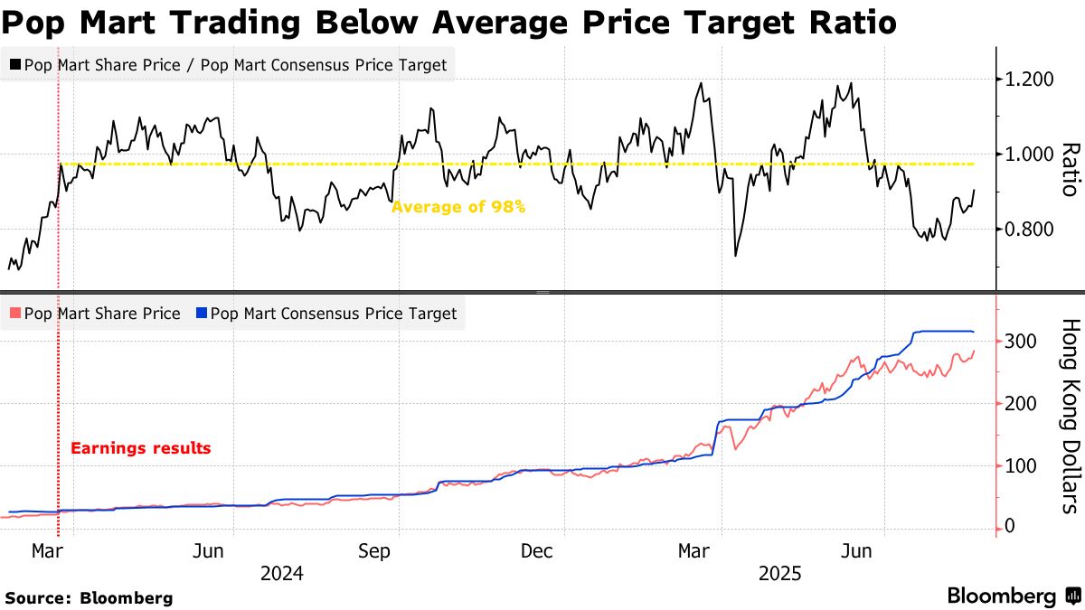 过去一个月分析师普遍维持目标价不变,可能正等待财报出炉后再调整预测。Labubu制造商上半年营收预计将增长两倍,首席执行官王宁表示今年海外销售额有望超越中国本土市场。
