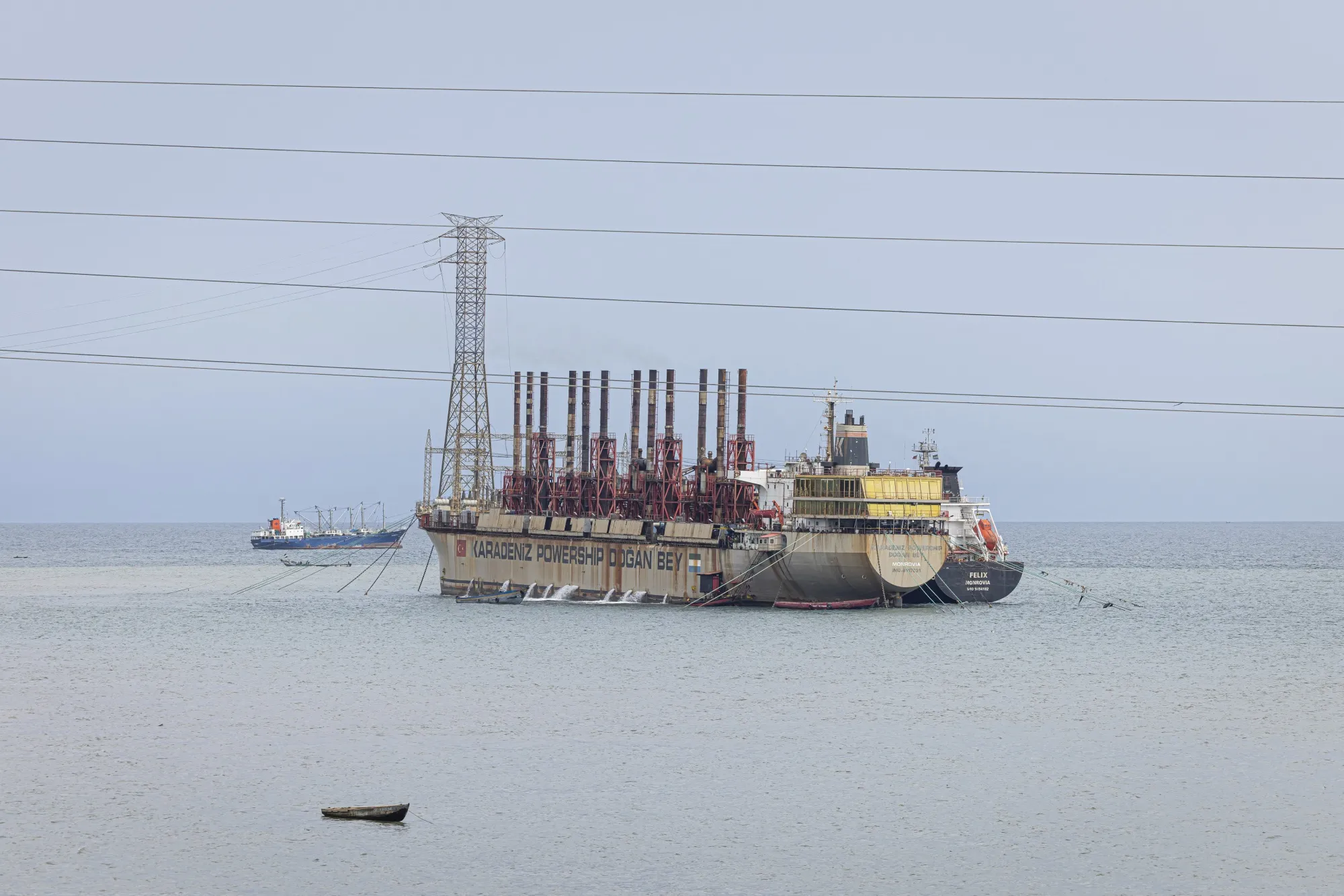 卡普能源公司在弗里敦海岸运营的浮动发电站。