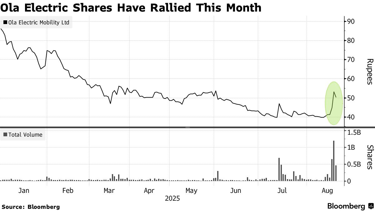 此次波动标志着Ola电动在7月创下历史新低后的试探性反弹。此前该公司因滑板车起火事件、市场份额萎缩以及去年轰动性IPO后的挫折等多重危机承压。