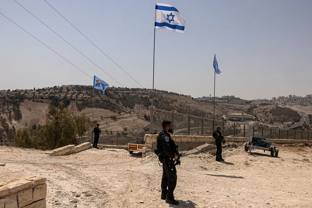 以色列警察在耶路撒冷外围被占领的约旦河西岸地区E1区域的马阿勒阿杜明定居点附近。