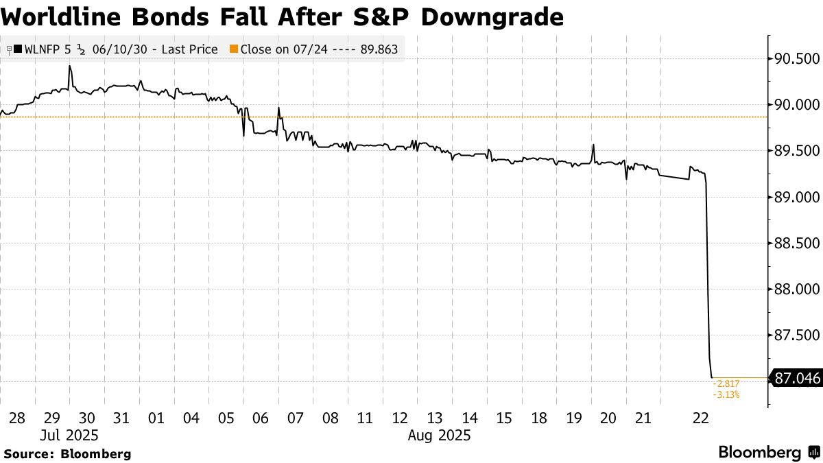 根据彭博汇编的数据,Worldline 2030年到期的5.5亿欧元债券因此消息下跌逾2美分,至约87美分。