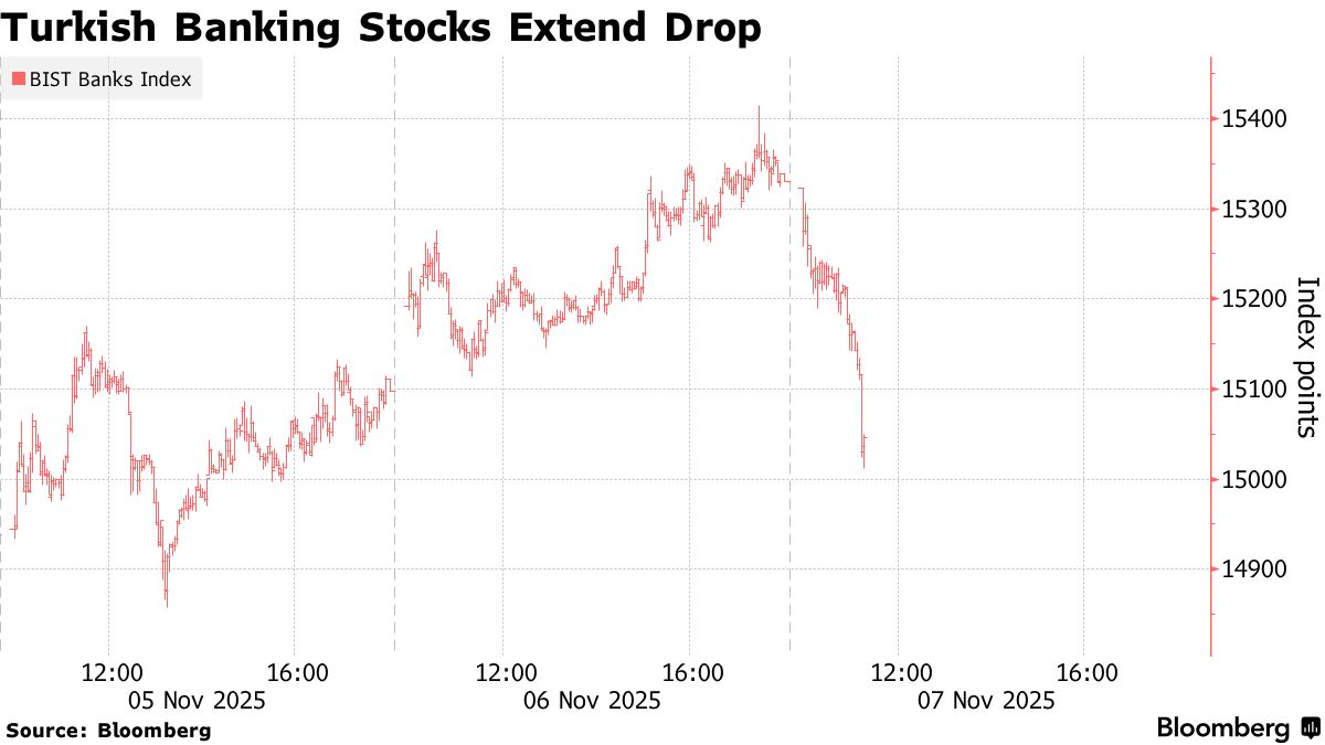 在州长讲话后,土耳其股市延续了跌势,银行股下跌1.3%,因为更高的利率可能会影响贷款机构的利润。两年期国债下跌,里拉几乎没有变化,截至上午11:10,交易价格为每美元42.2011,下降0.2%。