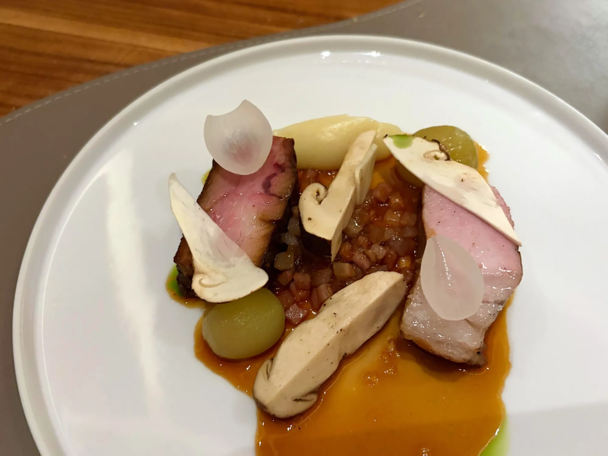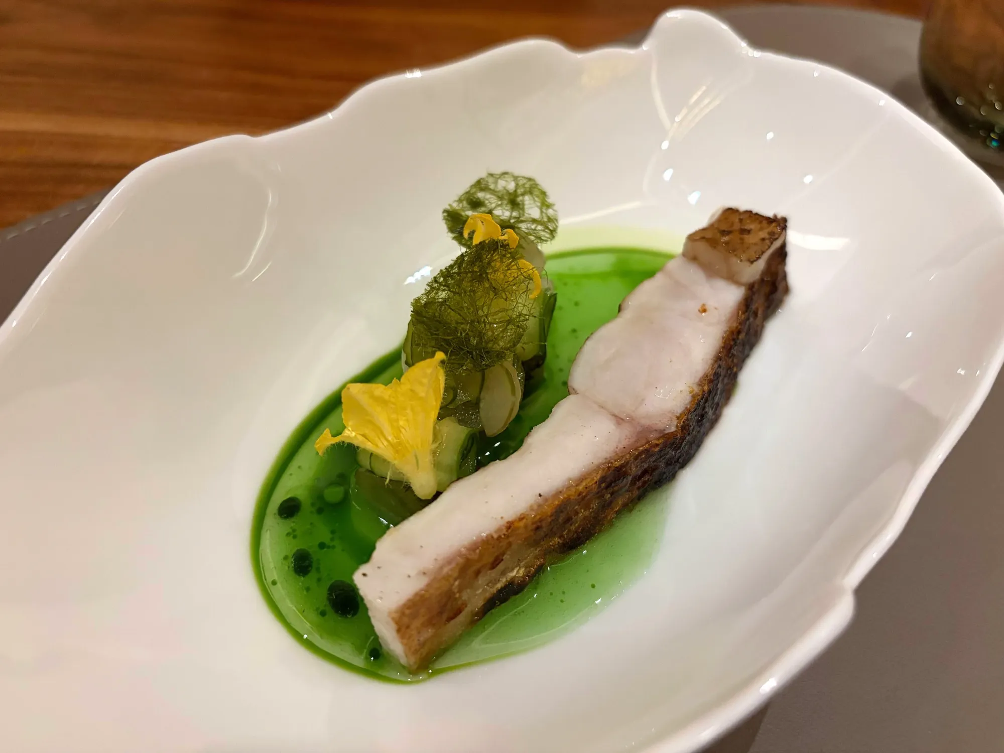 新鲜的农产品成为焦点,尤其是在埃克克布斯几年前完全从菜肴中去除了乳制品和面筋之后。结果是让独特的食材闪耀,比如塔斯马尼亚胡椒浆果与鸭肝的搭配。其他惊喜包括石垣鲷,这是一种在菜单上很少见的鱼。它通常只在夏季和秋季供应。