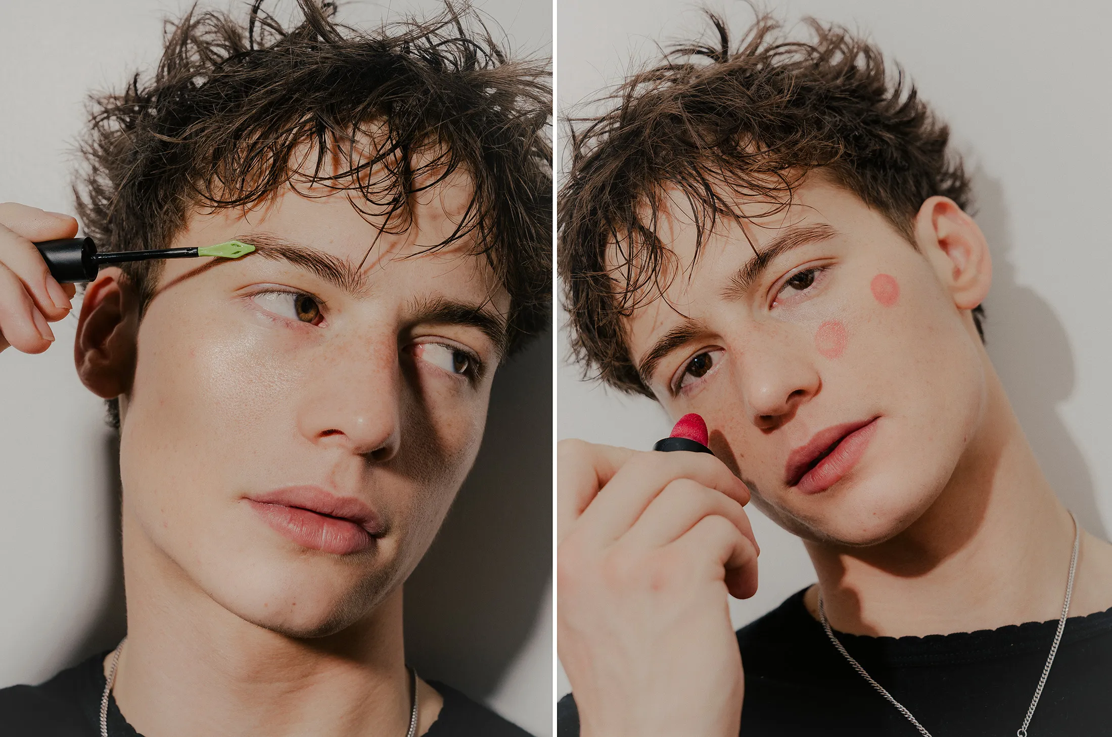 不久之后,布肯有力地论证,男性化妆对他的同龄人而言,意义与千禧一代和X世代截然不同,后者可能使用“男士眼线”、“口红”或“指甲油”来表明愿意与众不同。他说,对于在社交媒体上成长起来的年轻男性来说,化妆就像现实生活中的Instagram滤镜,其最高目的就是掩盖任何可能阻止你融入的瑕疵。从58岁的男性圈神话乔·罗根到25岁的外貌提升倡导者卡里姆·沙米,互联网的所有道路都通向一种夸张的巅峰男性气质的肖像:大肌肉。棱角分明的颧骨。强壮的方形下巴。