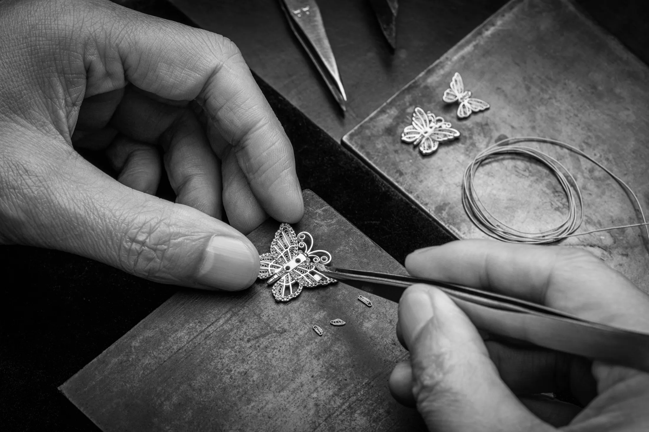 一位工匠在他的工作室里制作Laopu Gold产品。